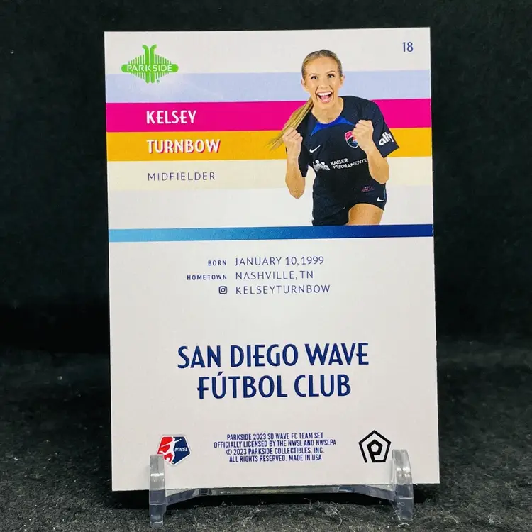 Card Size: Standard League: National Women's Soccer League (NWSL) Autographed: No Product: Single Year Manufactured: 2023 Player/Athlete: Kelsey Turnbow Type: Sports Trading Card Sport: Soccer Parallel/Variety: Limited Manufacturer: Parkside Team: USWNT Card Number: 26 Season: 2023 Country/Region of Manufacture: United States
