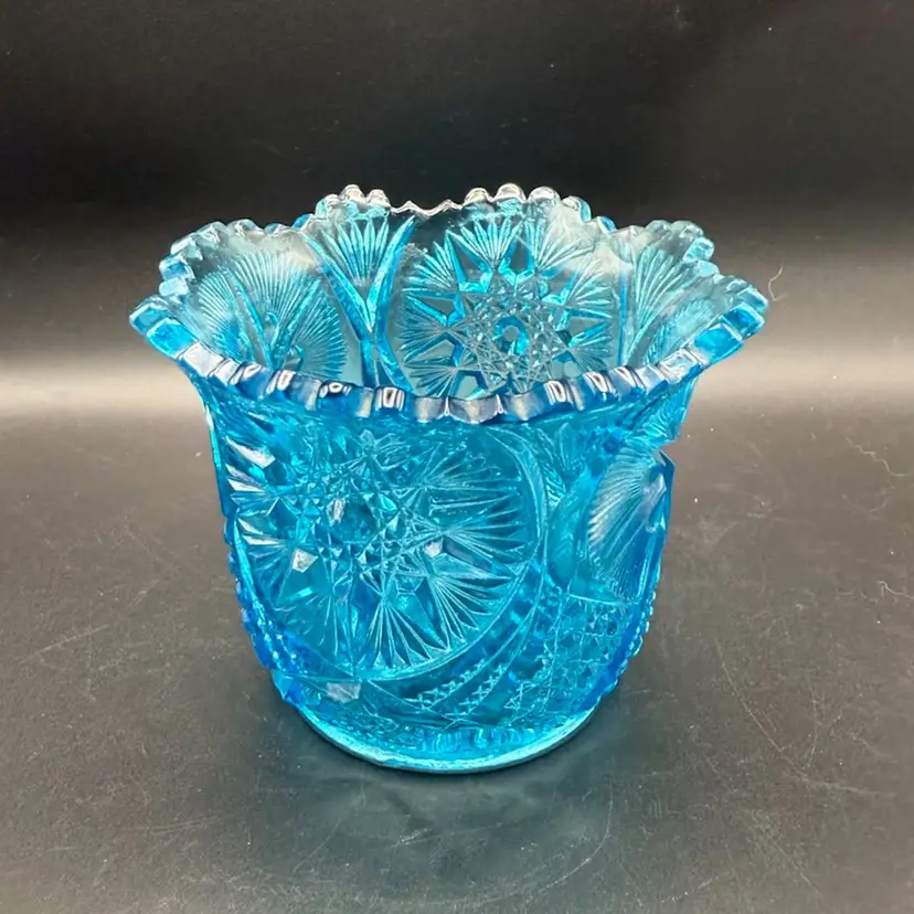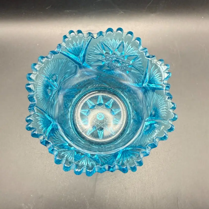Kemple Glass was a British glass manufacturer known for its pressed glass items, particularly during the mid-20th century. This particular pattern, often referred to as "Pressed Star & Fan" or sometimes associated with the "Yutec" line, was popular for its detailed craftsmanship and attractive appearance.
