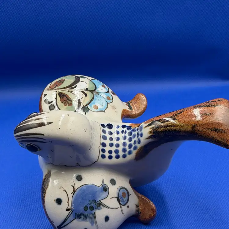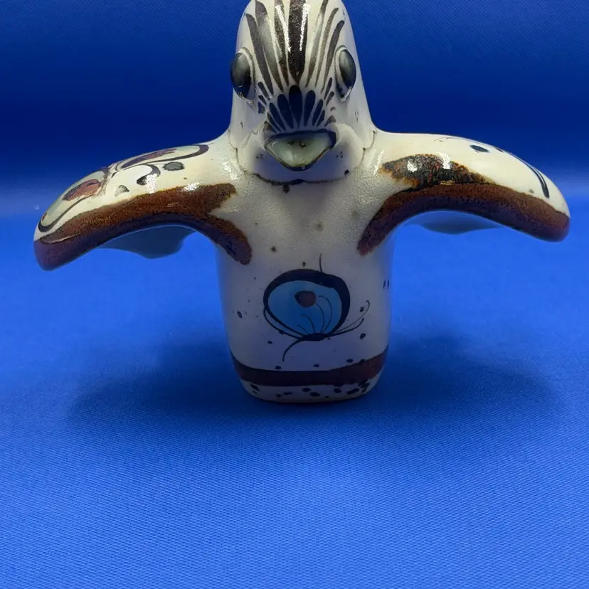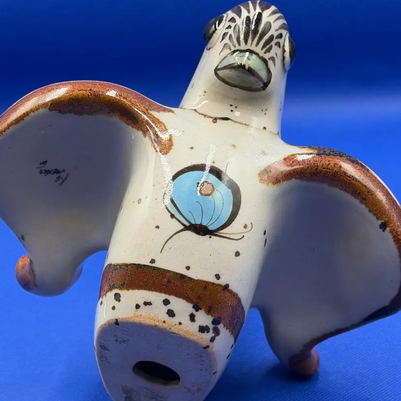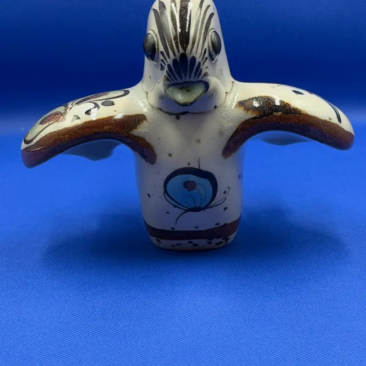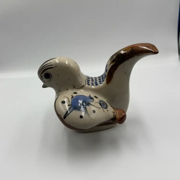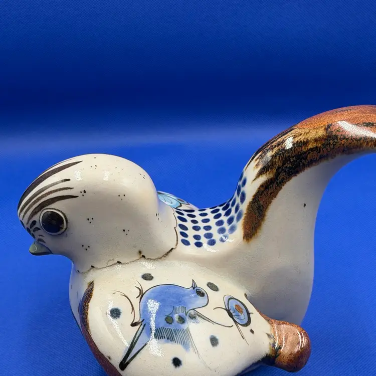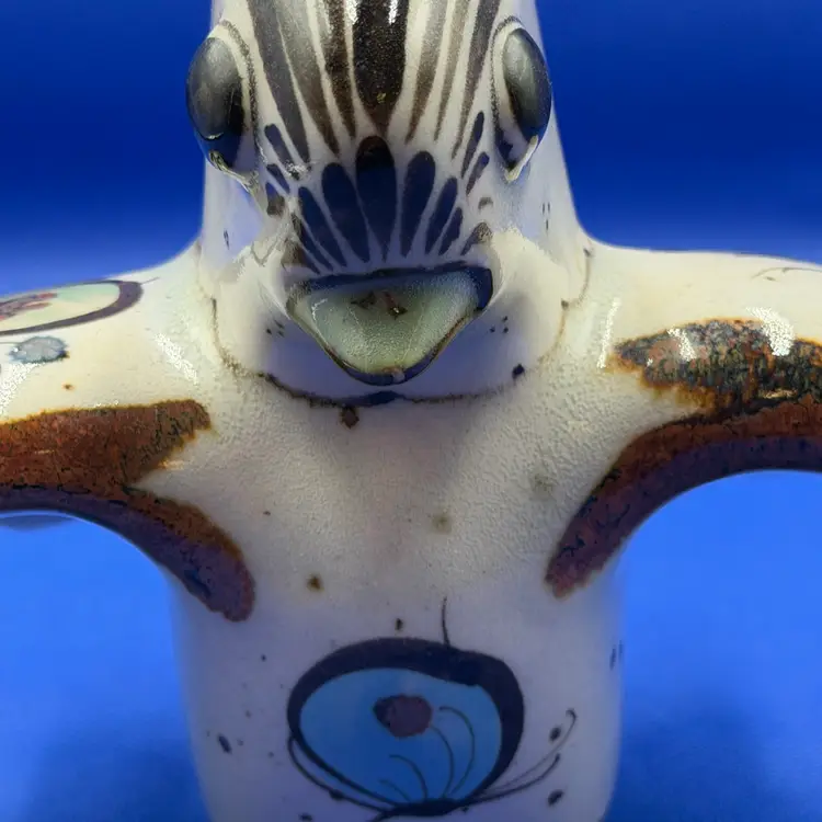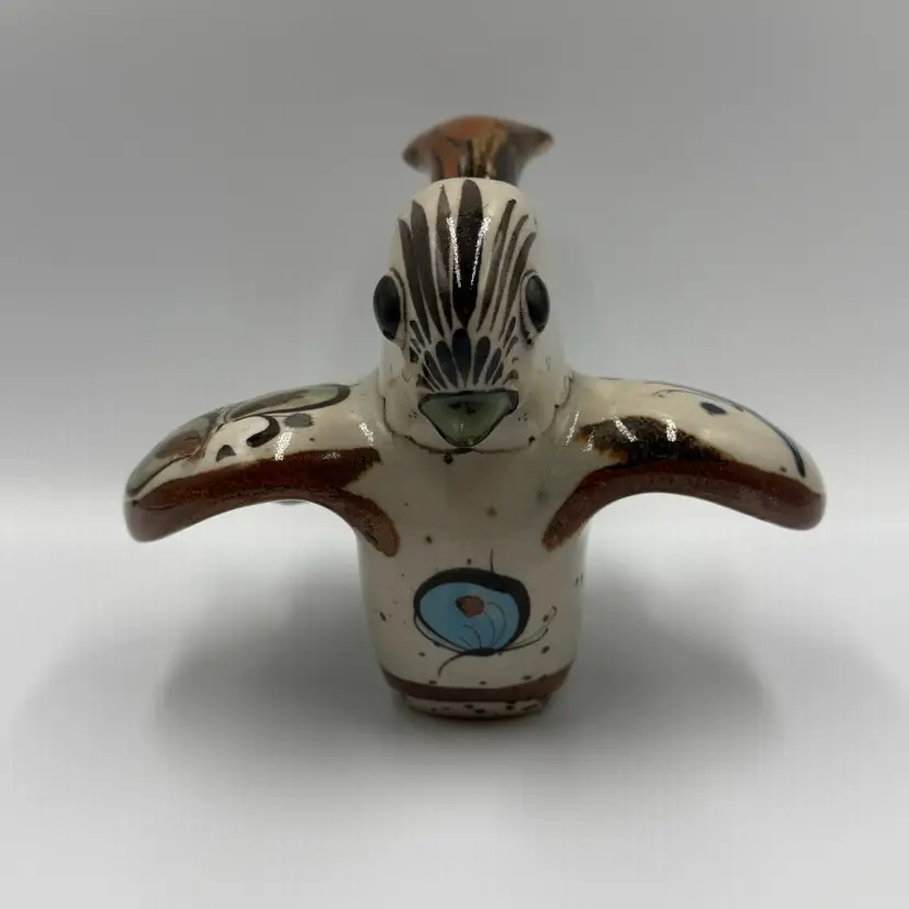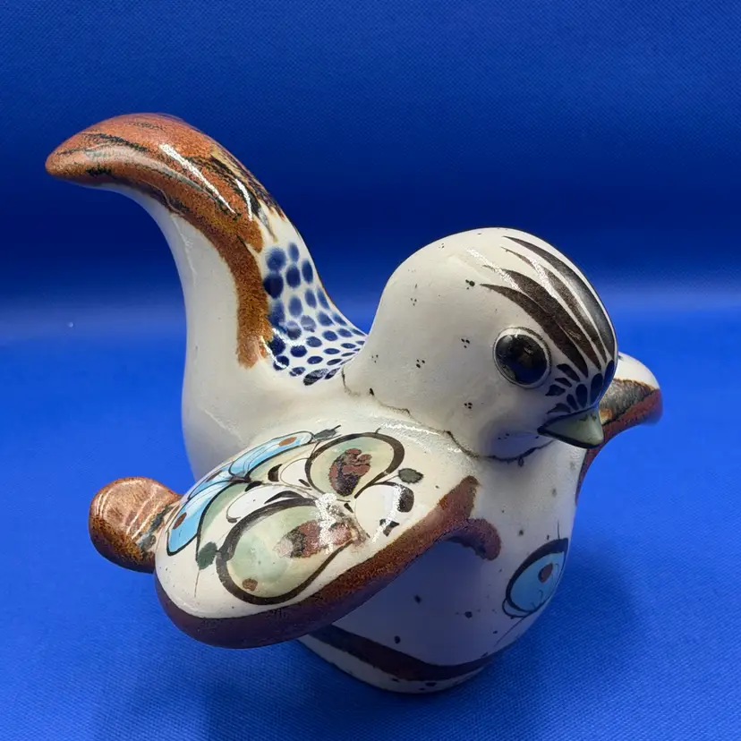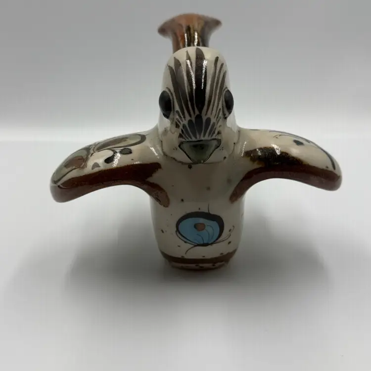 Beautiful vintage Ken Edwards Folk Art Mexican art bird figurine Lovely hand painted details in the birds outstretched wings and upturned tail. Piece is signed see photos