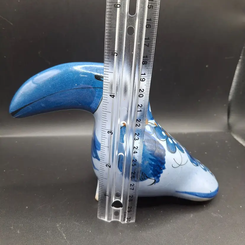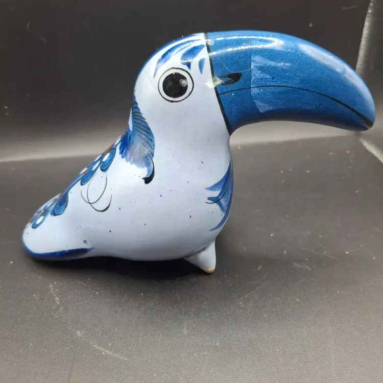 In the heart of Mexico, artisans crafted this whimsical toucan figurine, capturing both the vibrant culture and the enchanting nature of the toucan. The hand-painted blue and white floral design evokes a sense of serenity and elegance, making it a charming addition to any setting. This piece tells a story of tradition and artistry.