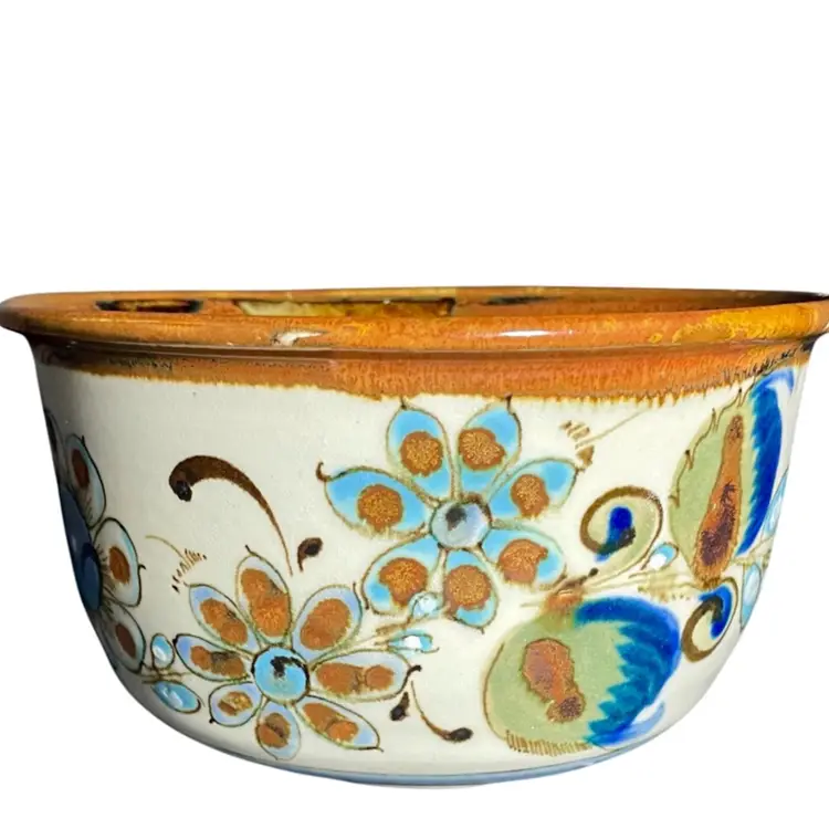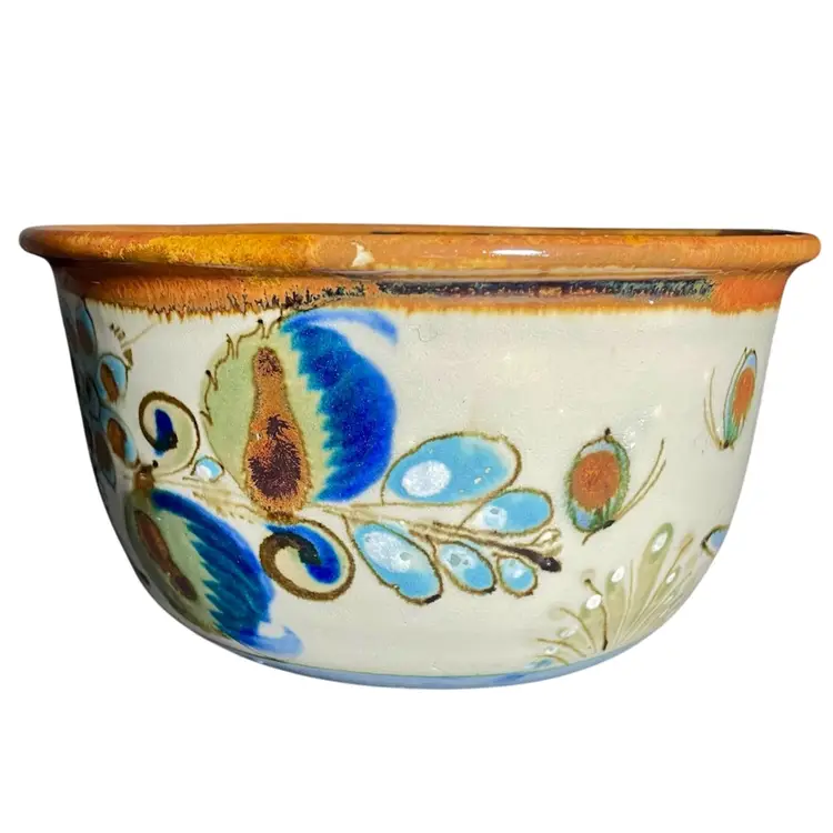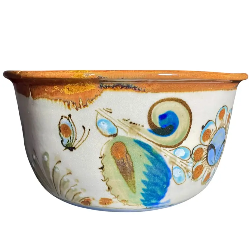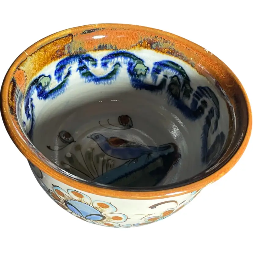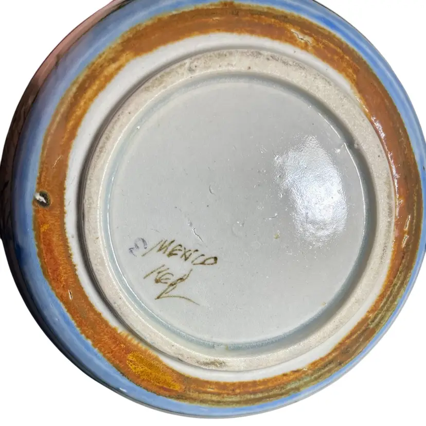 Ken Edwards Tonala Mexican Folk Art Pottery Bowl Blue Bird Butterfly 8” X 4” Condition is Used. Shipped with USPS Mail