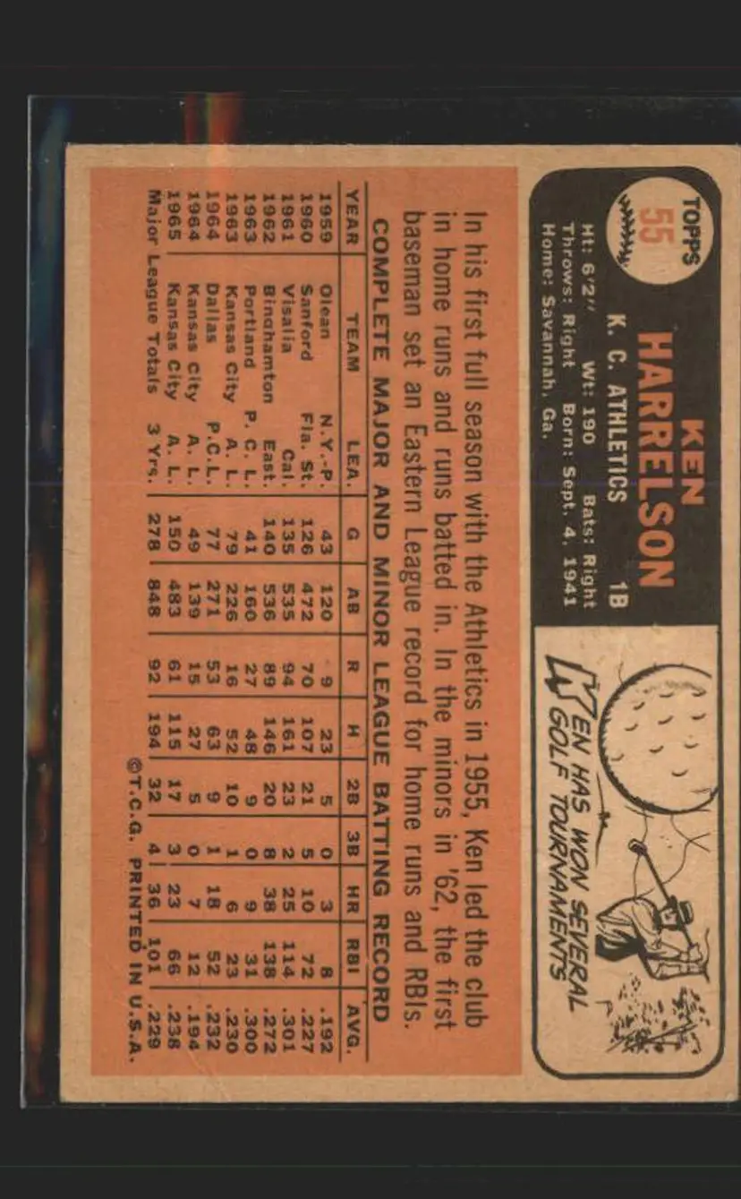 Ken Harrelson 1966 Topps #55 - (140) - Kansas City Athletics