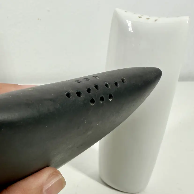 These elegant Salt & Pepper shakers shows very little surface wear, chips or cracks. Overall in great vintage condition. The matte black Pepper does show some spotting from age which a good clean should clear-up. Please see all pics for details.