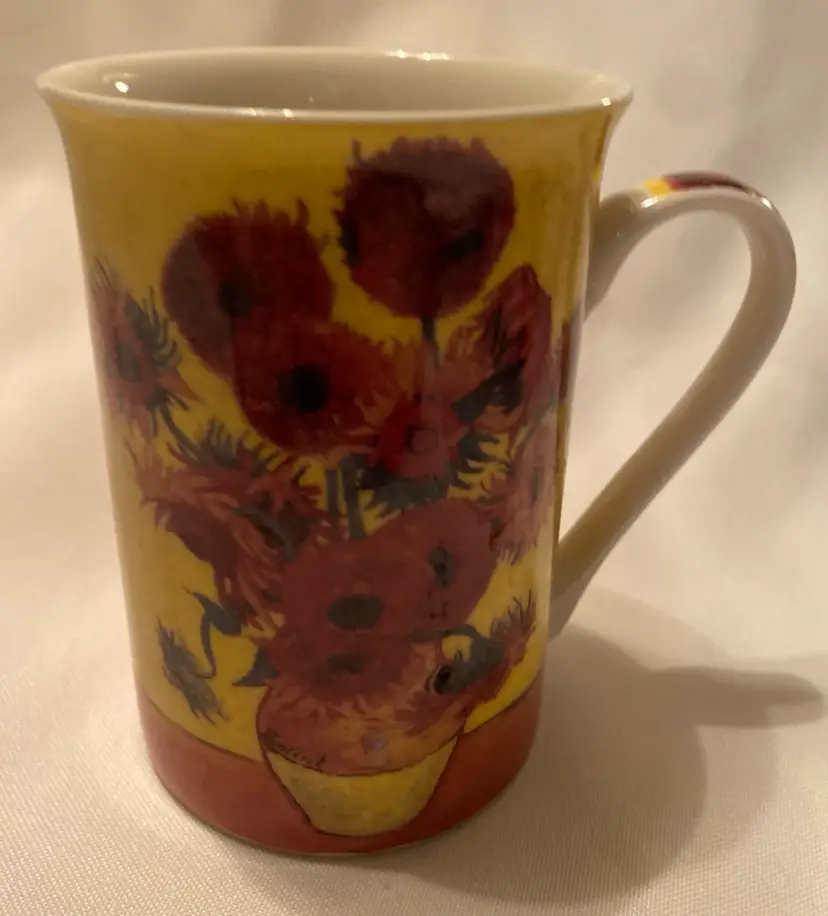 Kent Pottery Vincent Van Gogh Sunflowers 10 oz Artist Coffee Mug Cup Rare in EUC. Box not included