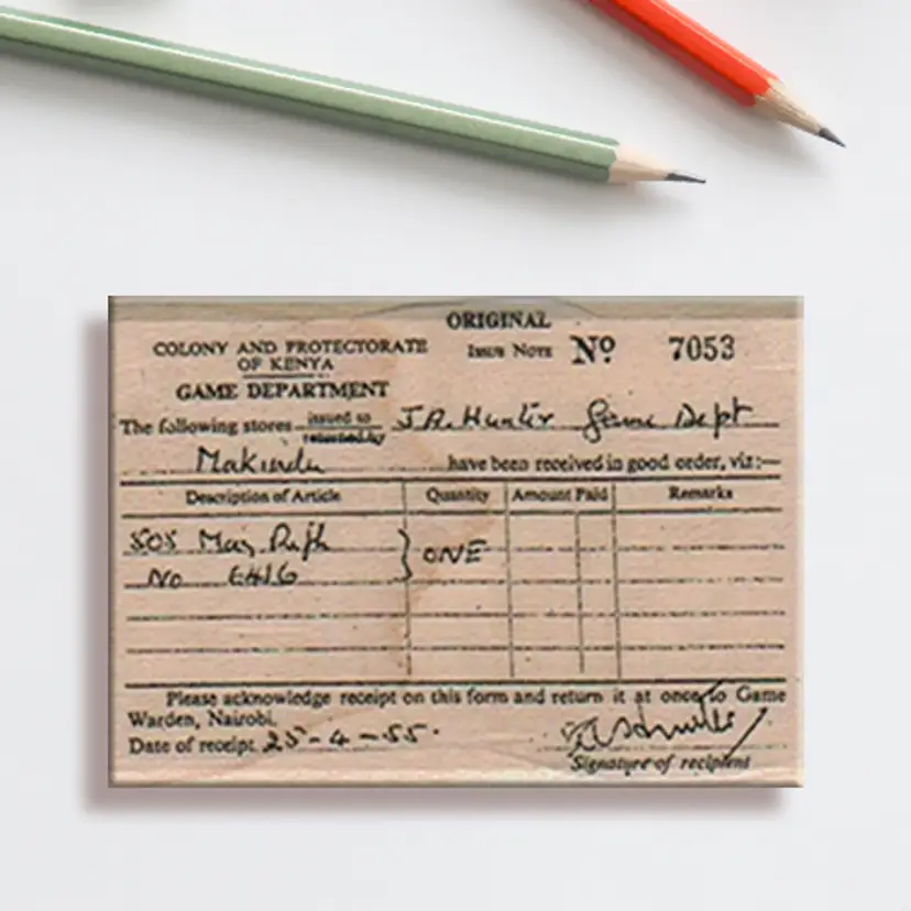 Kenya Invoice Background Rubber Stamp Size: 1-3/4 x 2-1/4 inches Wood mounted Red rubber Brand new/unused • Great for crafts, junk journals, mixed media projects, collage, card making and tags. • First purchase on District? Use this code for $5 off a $10 min purchase. ALOHAG34