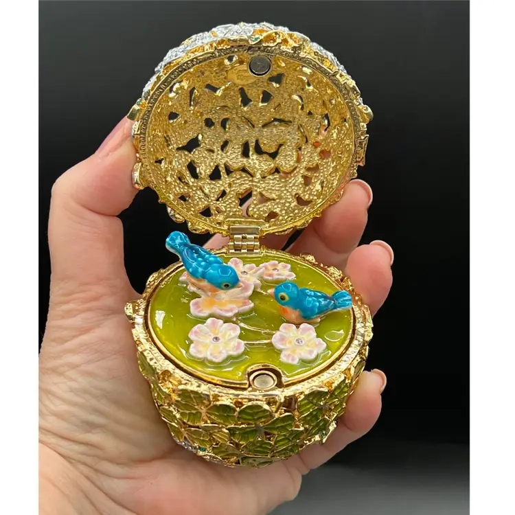 Keren Kopal is a designer of fine trinket boxes from Israel. She hand paints them and places by hand all the crystals. She uses Austrian crystals like Swarovski. Her boxes are highly collectible and made in limited quantities. She gets much of her inspiration from the Faberge eggs.