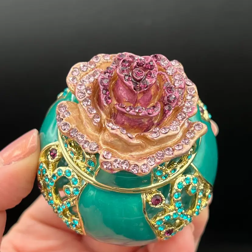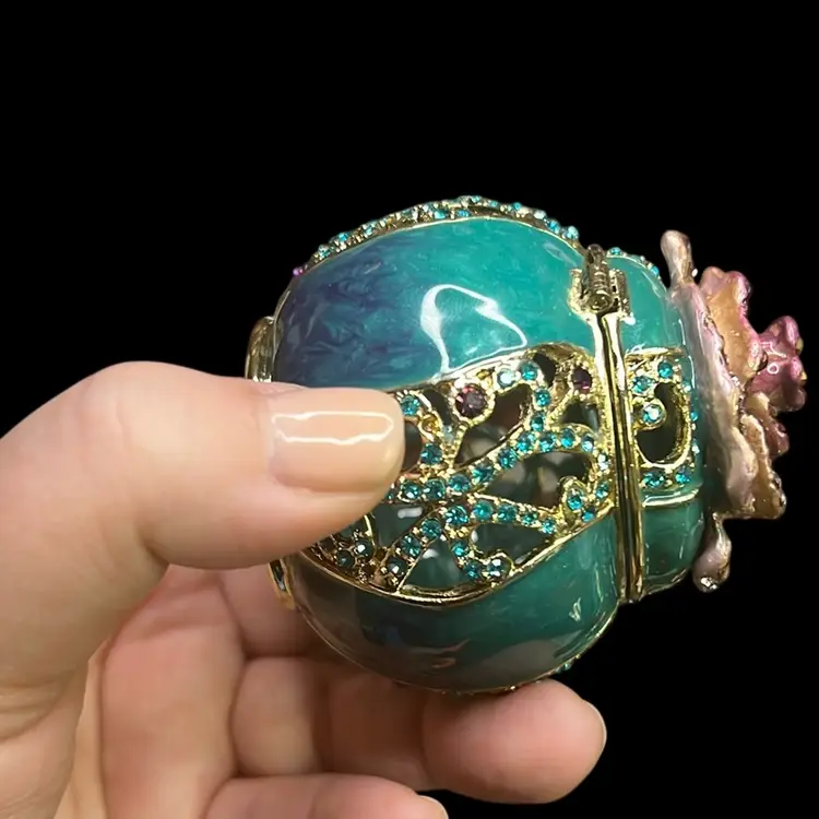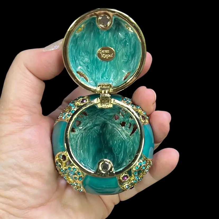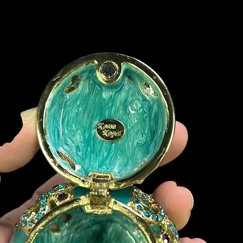 Keren Kopal is a designer of fine trinket boxes from Israel. She hand paints them and places by hand all the crystals. She uses Austrian crystals like Swarovski. Her boxes are highly collectible and made in limited quantities. She gets much of her inspiration from the Faberge eggs.