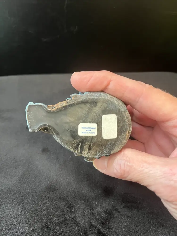 He looks like he is bracing in the wind! This is made of a really dense and heavy resin. His colors and texture is fantastic. It is in great condition. He measures approx 1.75"H, 3"long, 2" deep, 4 Oz