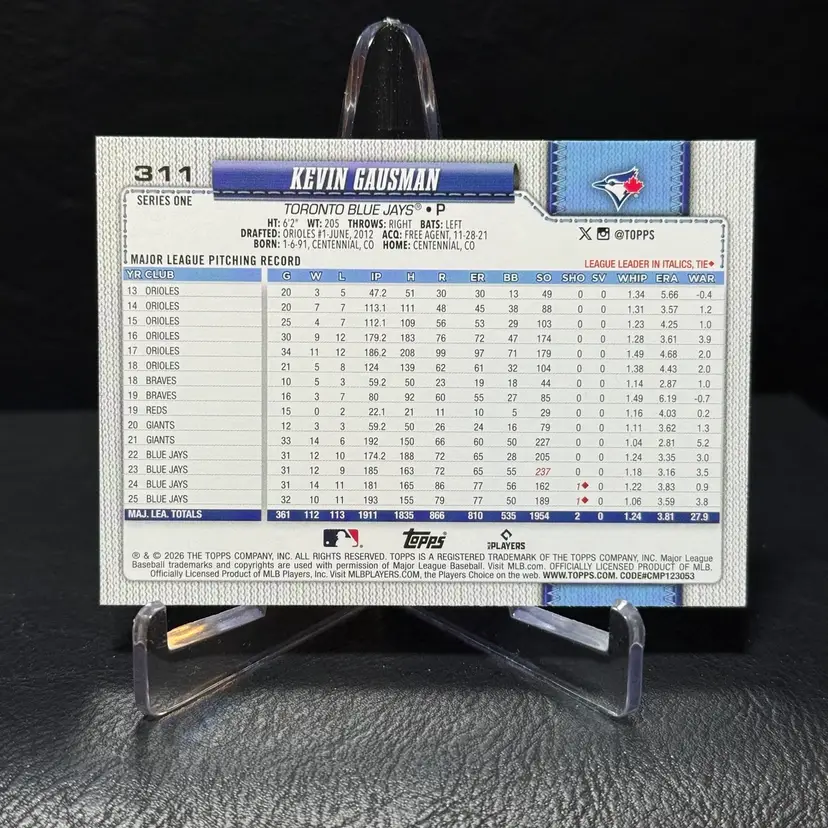 Kevin Gausman 2026 Topps Series 1 #311 Rainbow Foil Parallel Toronto Blue Jays