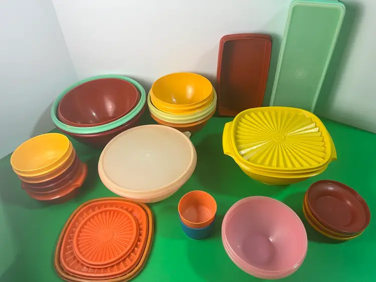 Over 25 bowls many separate lids all Tupperware. Great to piece out as replacement pieces or some ready to sell as is.