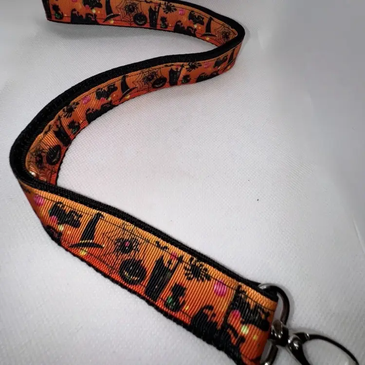 Inspired Lanyard / Key Chain 7/8" or 1" Wide with Designer Ribbon Made with 7/8" or 1" grosgrain ribbon and sewn onto 1” webbing for additional strength. Approximately 19.5 inches long from top to bottom of the clip. Very fashionable and lightweight!