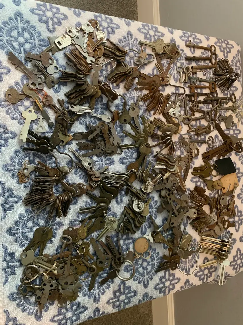 You Receive 5lbs plus of assorted Keys Large &Small Skeleton, Open &Closed Barrel. Keys for Lock Boxes, Wind Up, Cars, and so much More. Many Many Different Types. Feel free to Ask any questions.