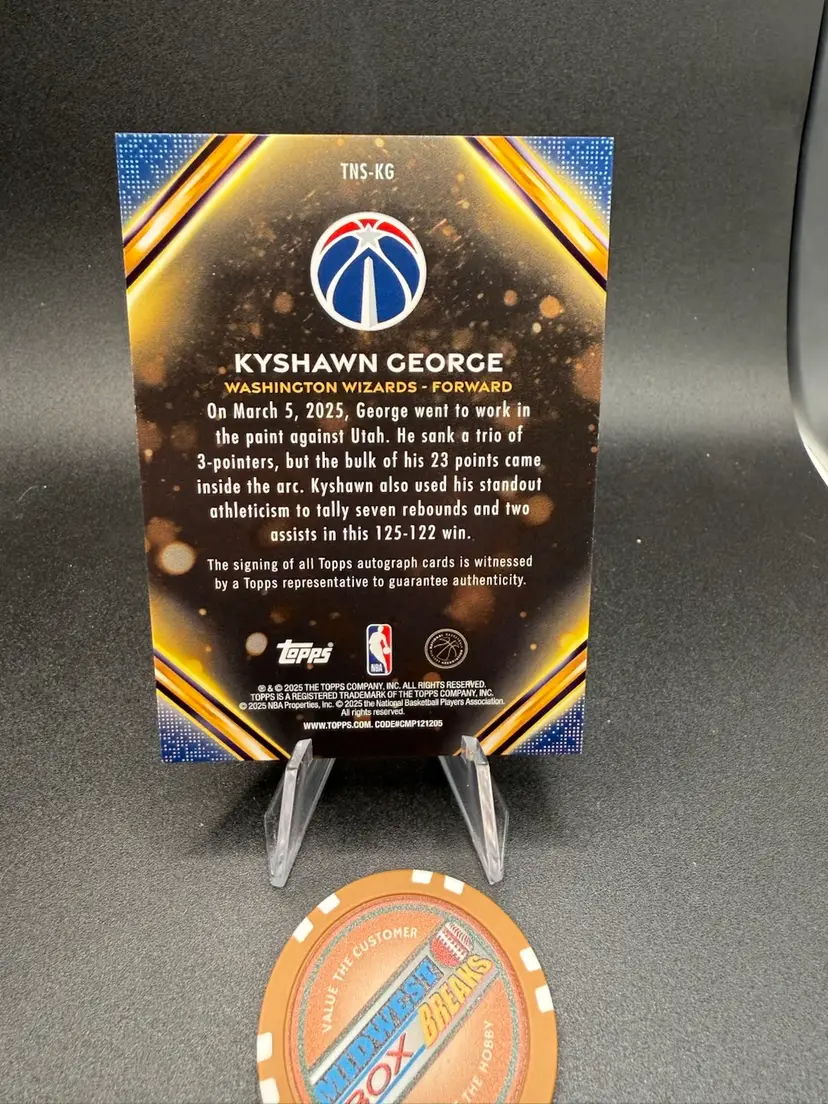 This is a Kyshawn George notch signatures auto from Topps NBA 2025-26. Washington wizard.