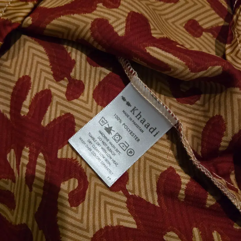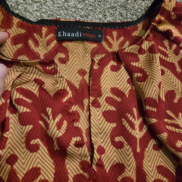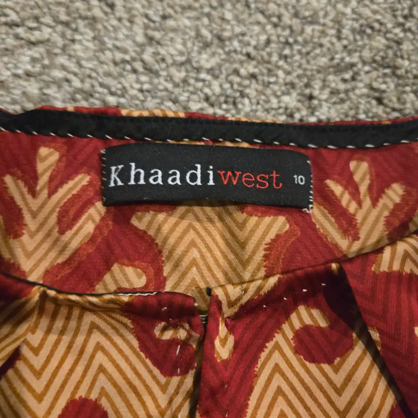 Khaadi West Pakistan Boho Peasant size 10 Blouse 3/4 Sleeve Red Top Ikat Relaxed