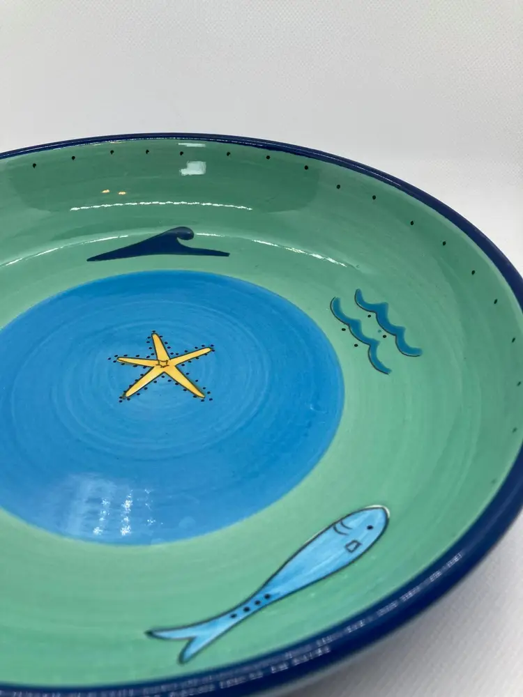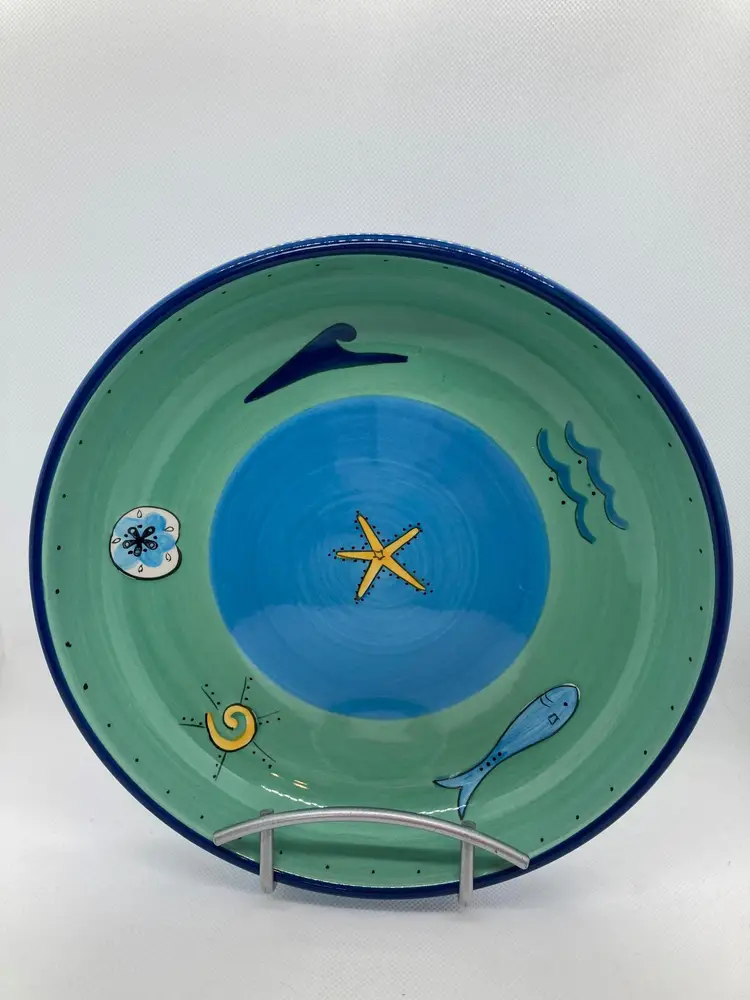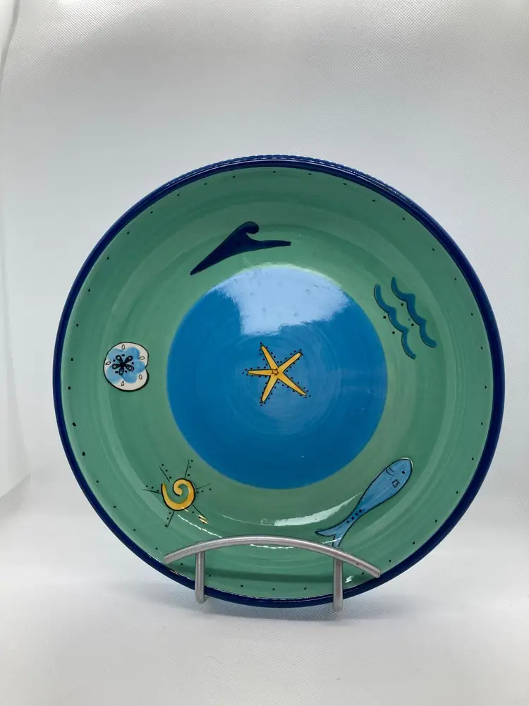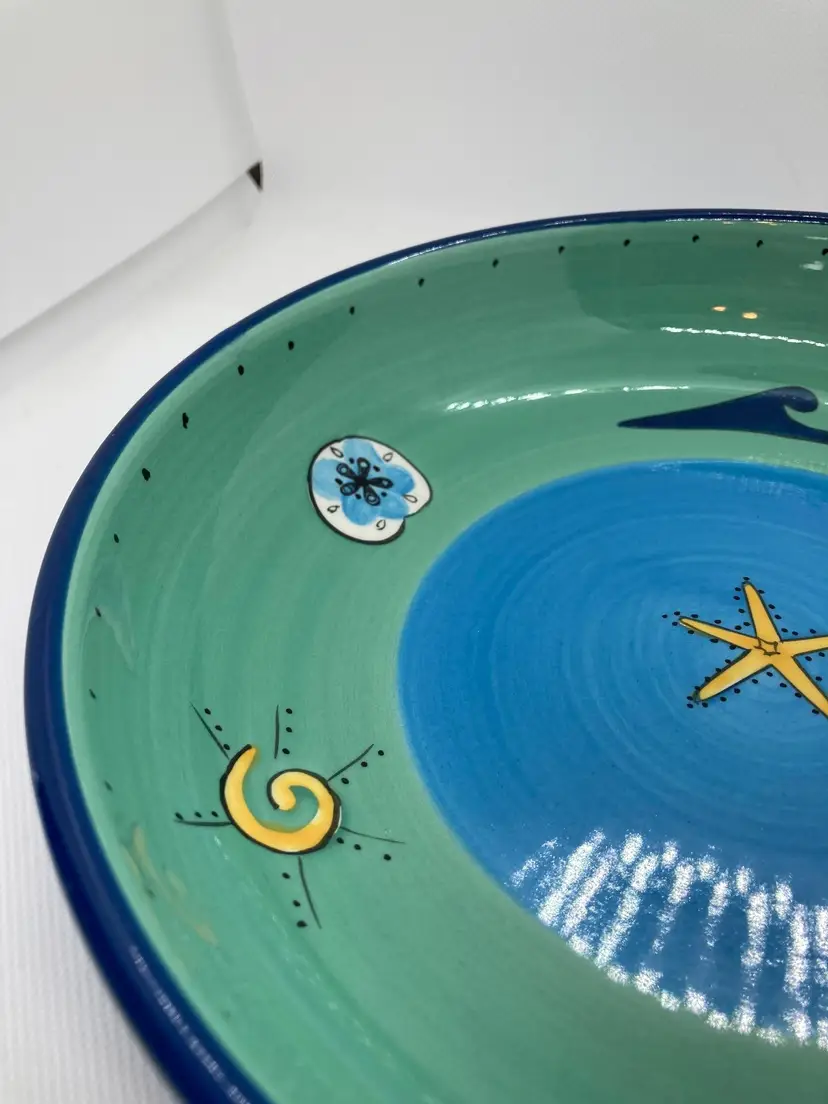 9" wide and 2" deep. Such a fun dish for any nautical decor need. Excellent pre-owned condition.