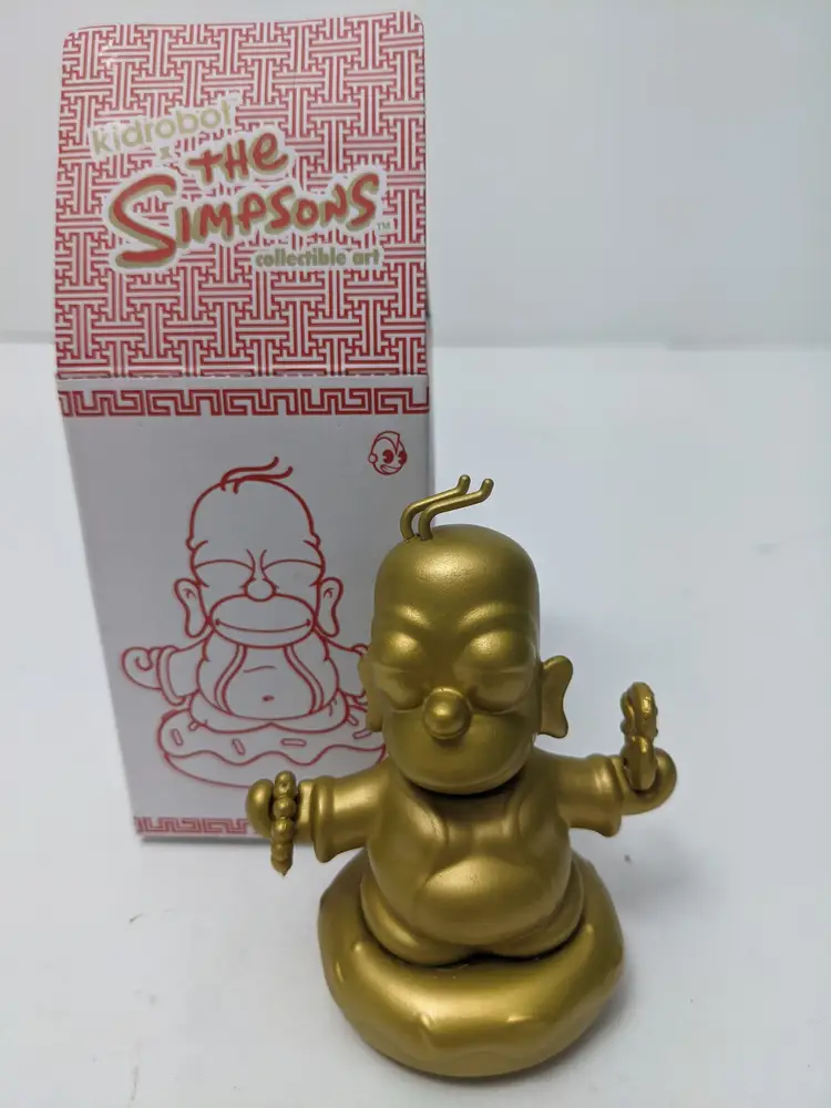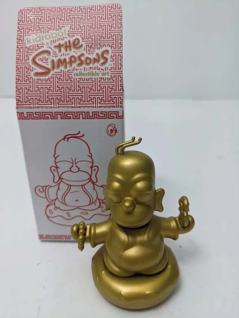 Kidrobot The Simpsons Collectible Art - Vinyl Homer Simpson Gold Buddha - Open Box Includes both accessories