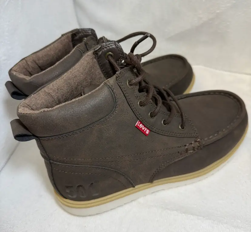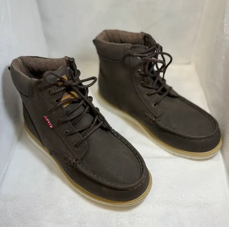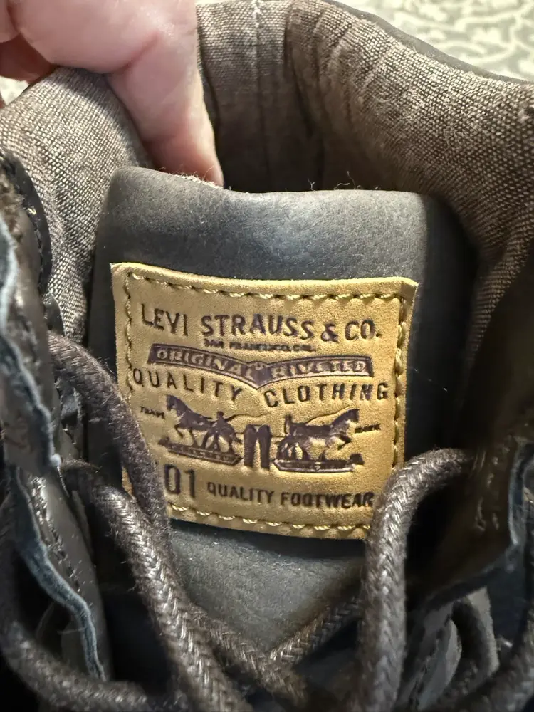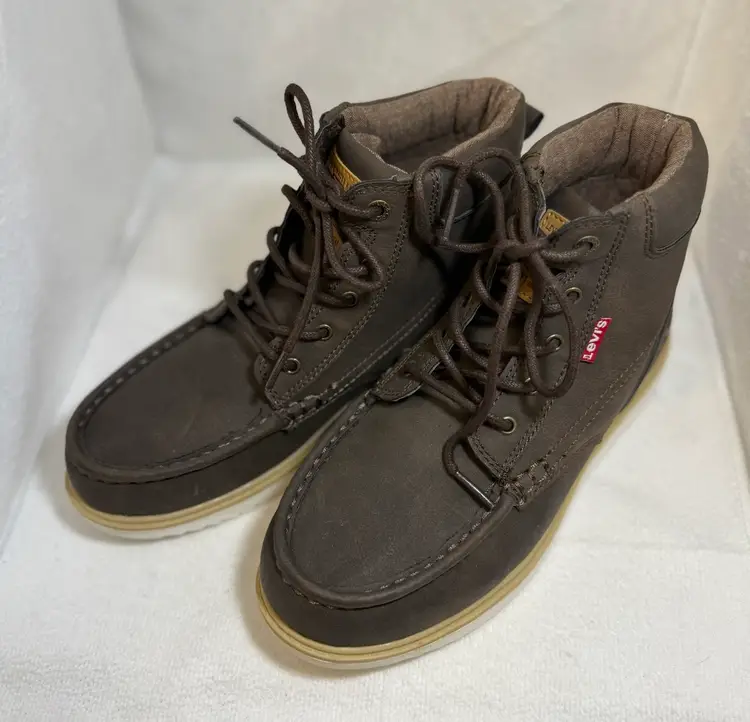 Levi Strauss & Co. quality footwear with a classic design. Features a brown label with black and tan details. New, no tags. Grandchild took the tags and threw them away before he tried them on. Excellent condition new I just don't have a course the Tags.