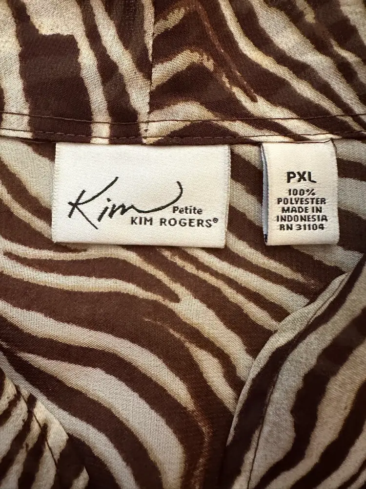 Kim Rogers Animal Print Sheer Cover-Up Petite Extra Large 100% Polyester.