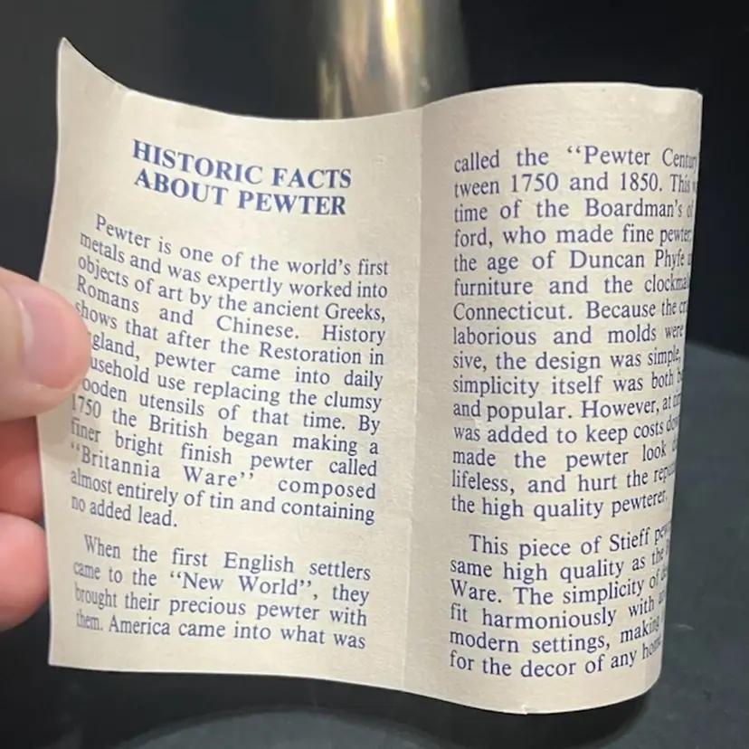 Beautiful!! And super cool that it included its original info booklet on pewter.