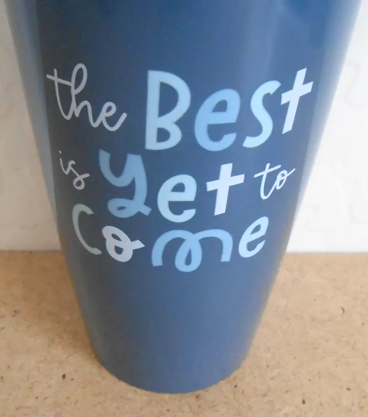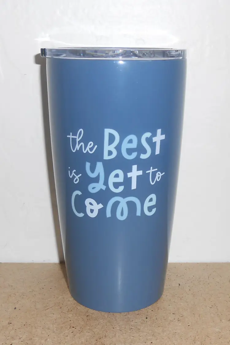This Kirkland's Home Tumbler in Blue Sentiments is the perfect addition to your collection. Featuring the phrase "The Best is Yet to Come", this round tumbler with lid is a must-have for both teens and adults. The blue color adds a touch of elegance to your drinkware collection. This tumbler is perfect for use at home or on-the-go.