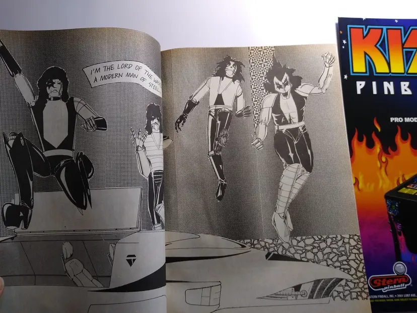 Dive into the world of rock with this exclusive KISS Collectors Set, featuring a pinball machine flyer and a fantasy rock comic book. Ideal for enthusiasts of the genre, this set showcases the iconic graphics and vibrant culture of the legendary rock and pop band, Kiss. Produced in the United States, these items capture the essence of music memorabilia, especially for fans of the rock and pop genre. The collectible flyer and comic book serve as a testament to the enduring legacy of one of music's most theatrical acts. Own a piece of Kiss's storied history with this unique lot of 2.