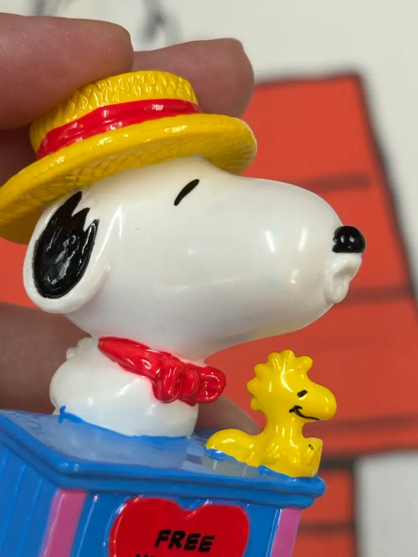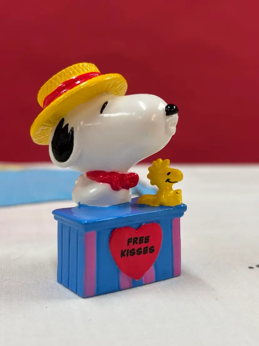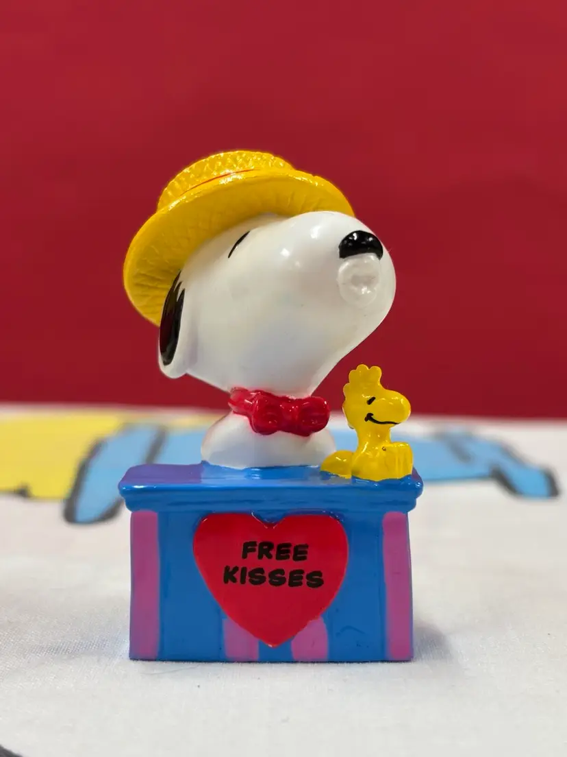 How cute is this Snoopy and Woodstock at a kissing booth? Please note there is a very faint blue stain on Snoopy’s cheek as seen in the last photo. Otherwise this PVC is in excellent condition and would make a great addition to any collection.