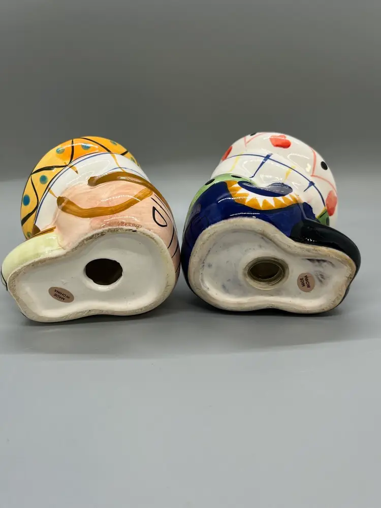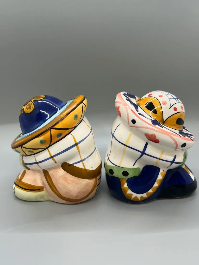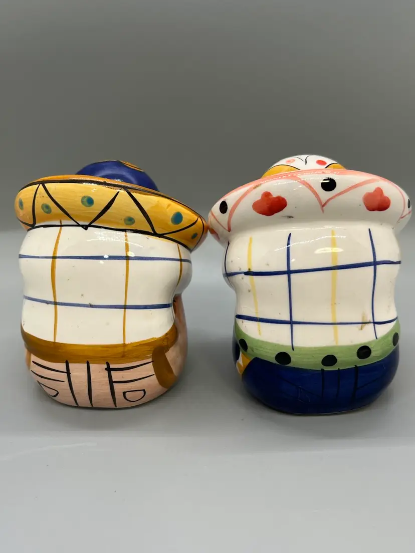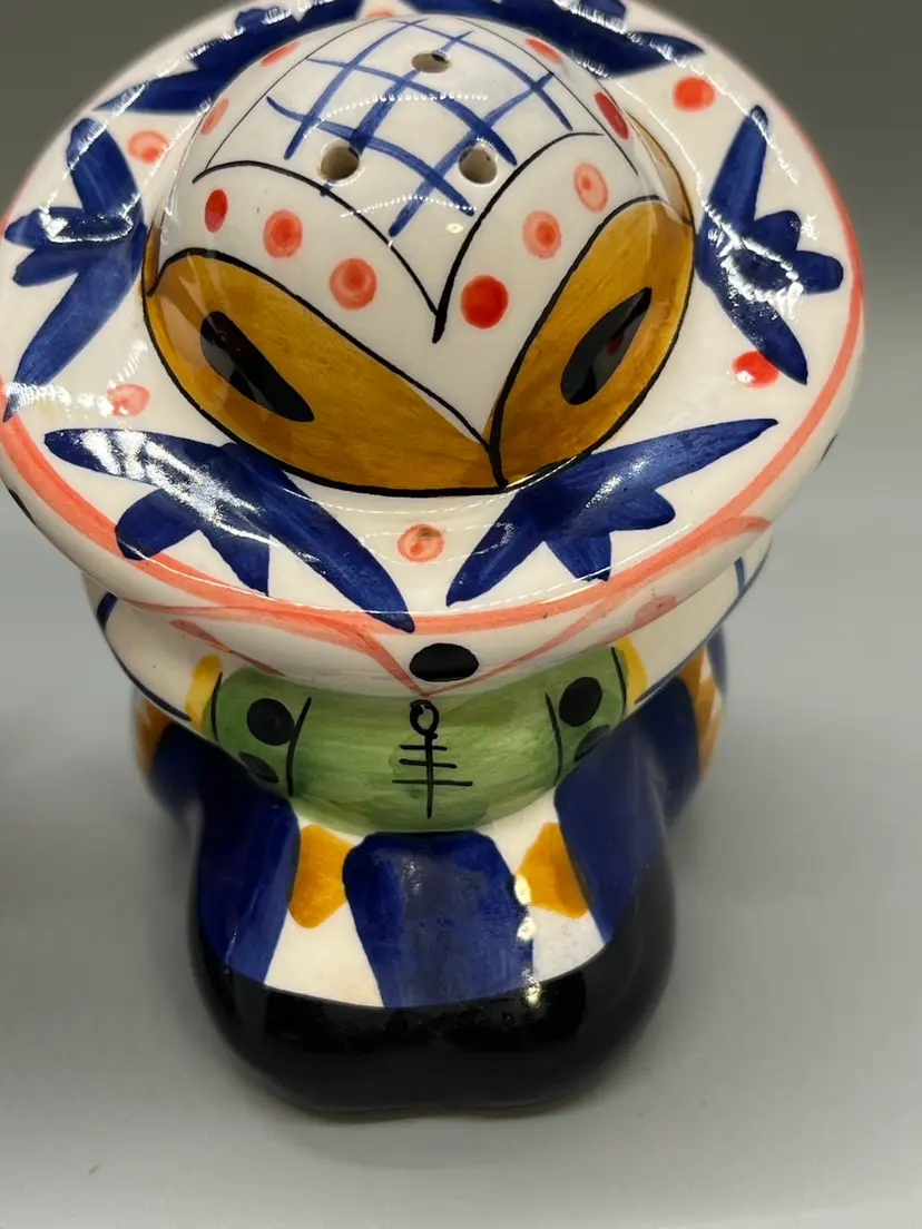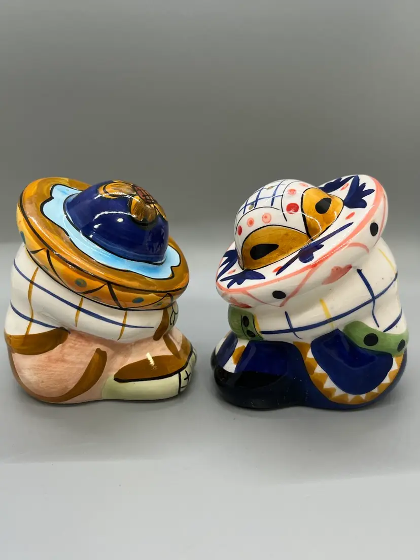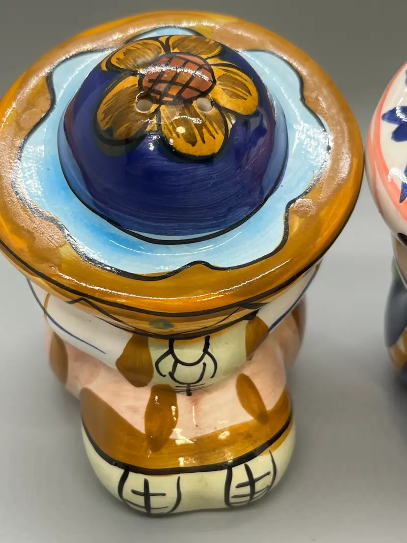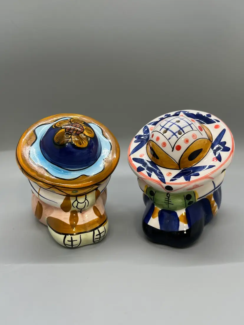 Add a touch of Mexican flair to your kitchen with these novelty salt and pepper shakers. Made of dolomite and ceramic, these small shakers feature a multicolor design and stand at 3.5" tall. One is missing the stopper.
