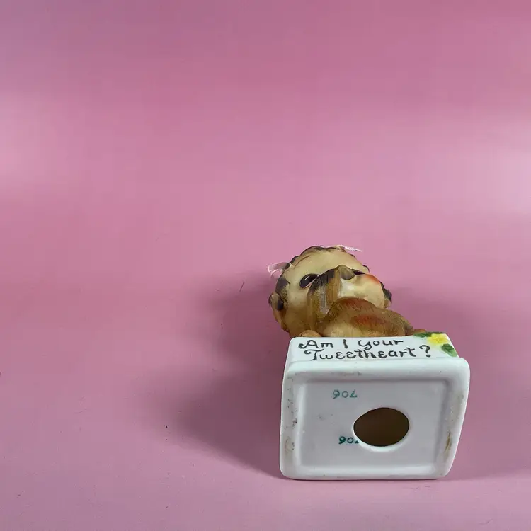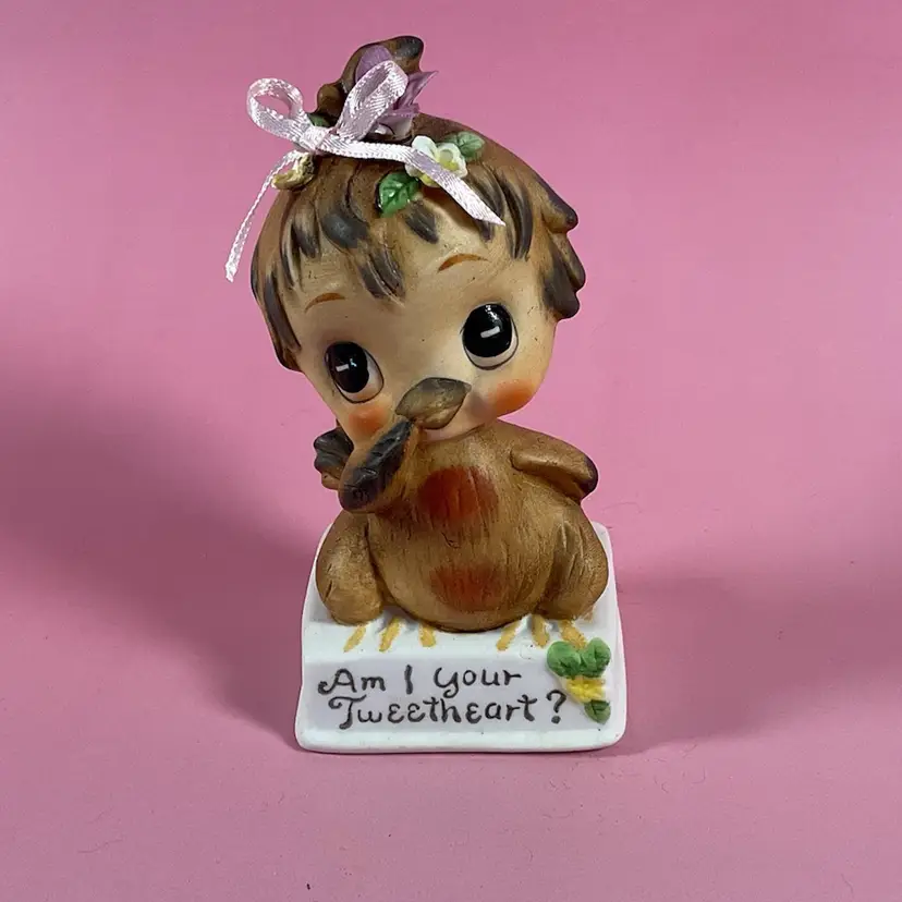 Cute kitschy bird figurine with message on front “Am I your Tweetheart?” Great for Valentine day. Approximately 4” tall. No chips or cracks