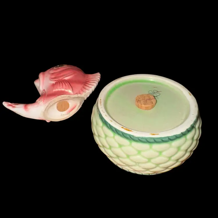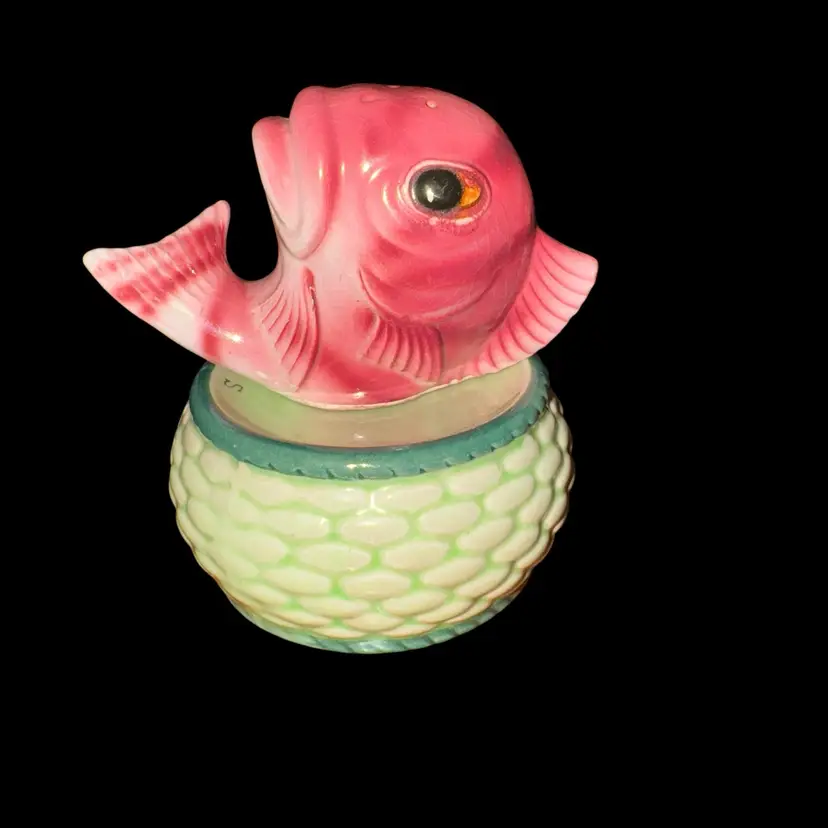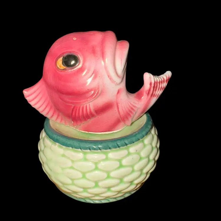 Basket is salt, fish is pepper. Excellent condition. Made in Japan.