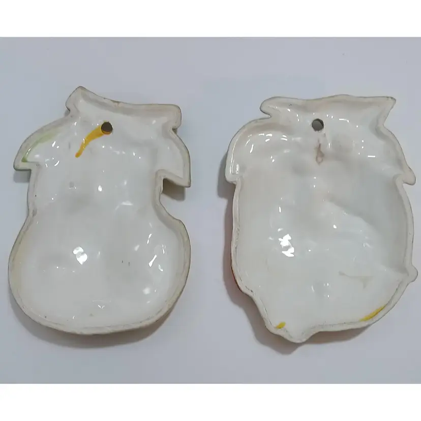 Kitschy Pair Of Fruiti Buggy Wall Plaques; Hand painted With Beautiful Bright Colors; Pear is 8" Long x 5.5" Wide; Orange is 7.75"L x 5 .5" W; Each has a hole for hanging! These are fun!