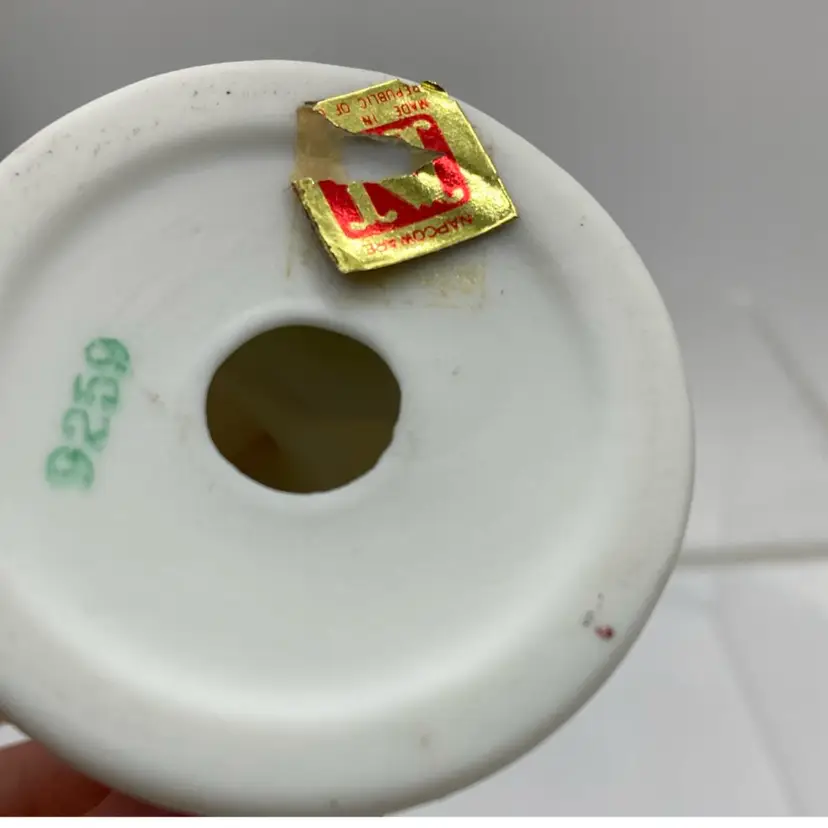 Sweet and petite at just 2 inches tall. Partial sticker remains, as pictured. #9259 No chips or cracks. Tiny bit of paint loss.