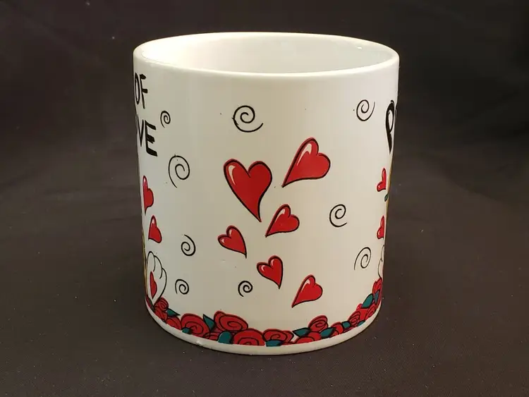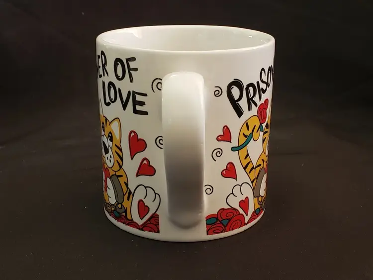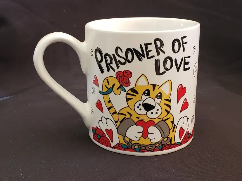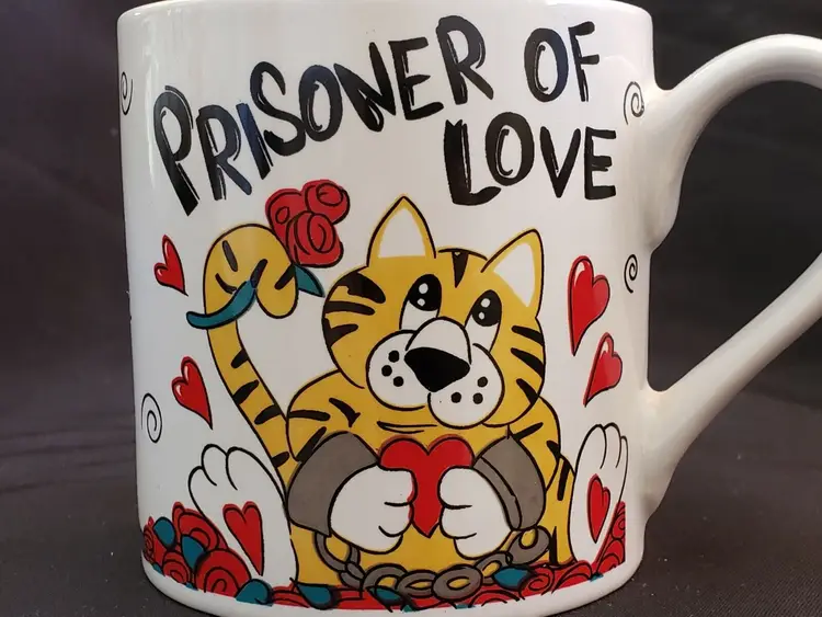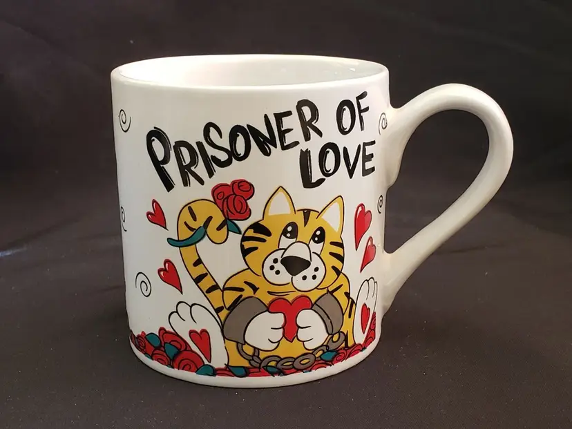 Pattern: Cat & Hearts Shape: Large round mug shape with handle Occasion: Valentine's Day Color: Red White Black Orange Country of Manufacture: China Material: Ceramic & Porcelain Set Includes: Coffee Mug Brand: Tb toy trading CO Personalize: No Type: Coffee Mug Model: Shackles Chains Theme: Valentines Day Country/Region of Manufacture: China Service For: 1 Handmade: No (393)