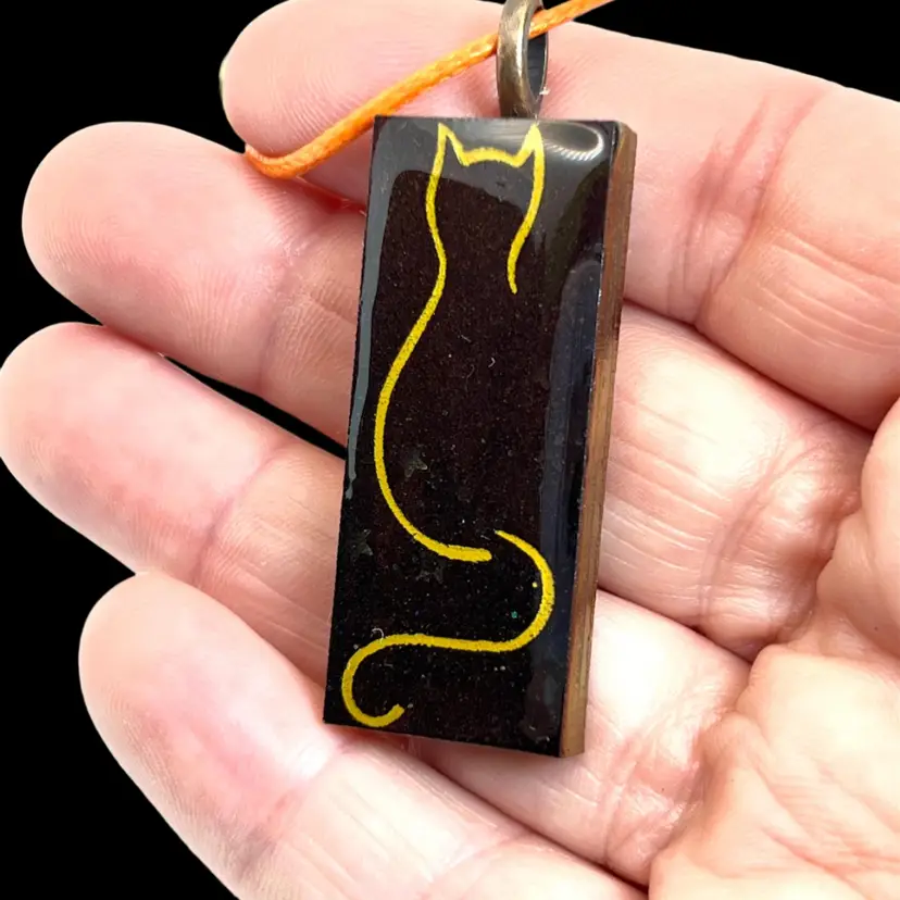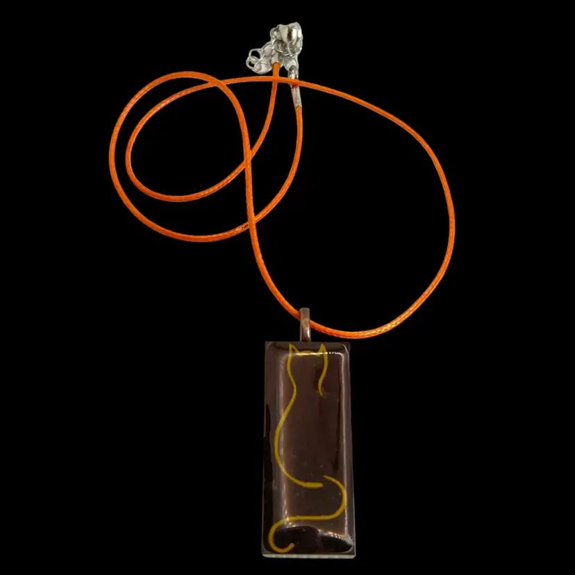 Handmade by me! ๐ซถ This dazzling pendant features a mix of color shifting red, orange, brown colors. Hand cast with epoxy resin. The resin is UV resistant to prevent premature yellowing and temperature resistant ๐ฅ up to 475F. Comes with an orange cord necklace.