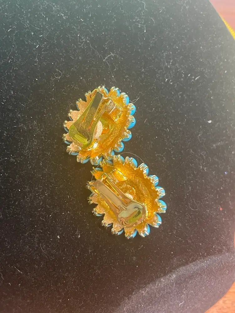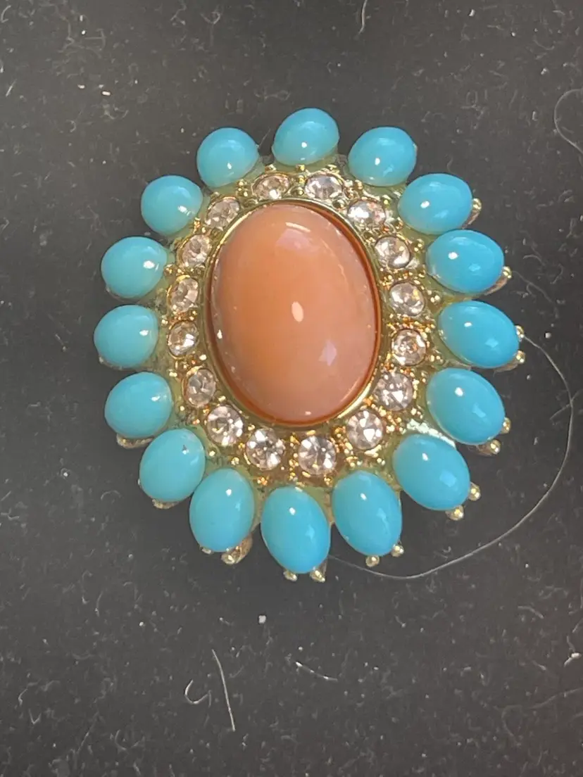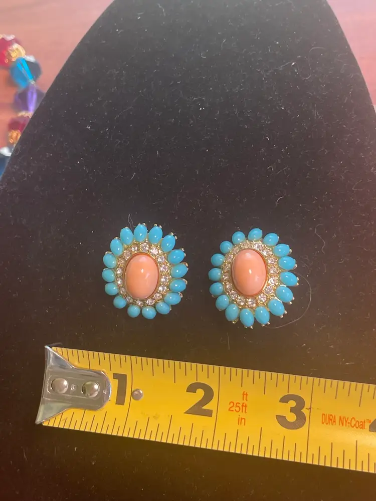 KJL EARRINGS Kenneth J. Lane Gold Plated Faux Coral Turquoise Rhinestone Clip On Earrings. Excellent condition