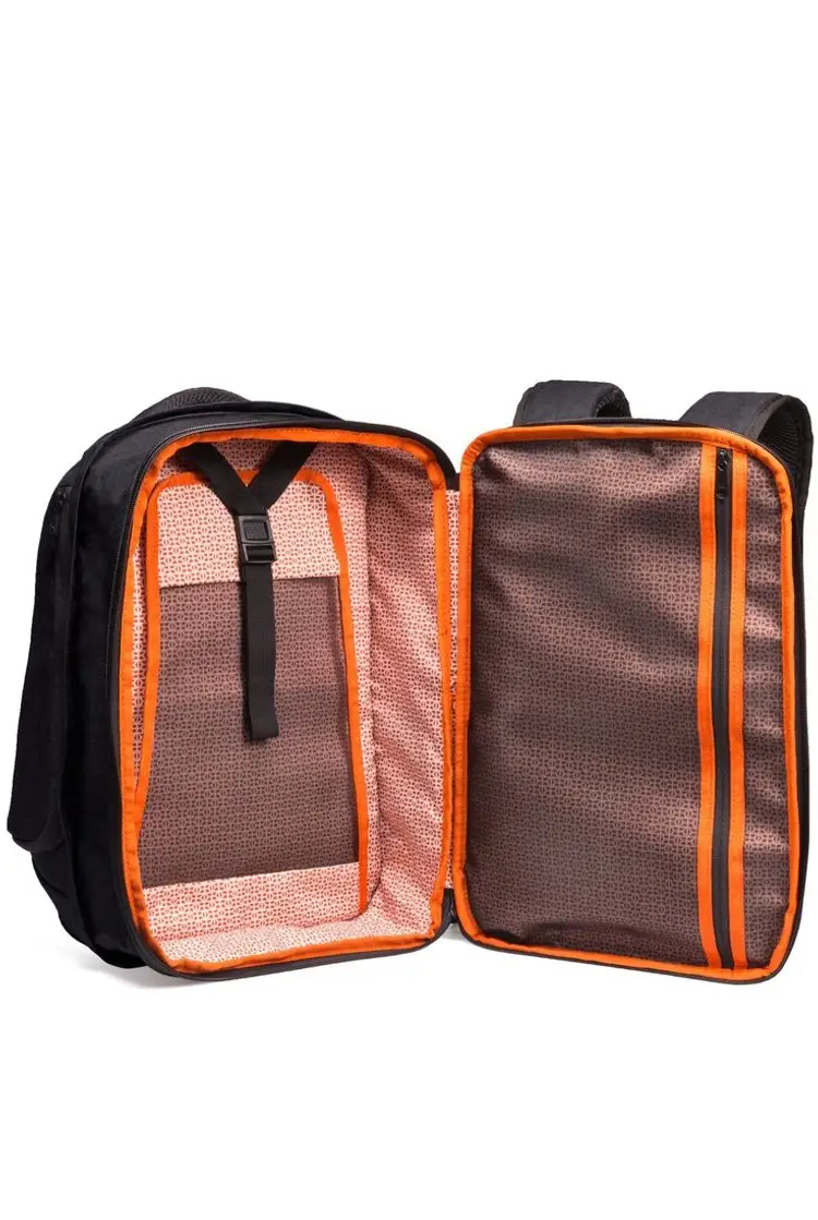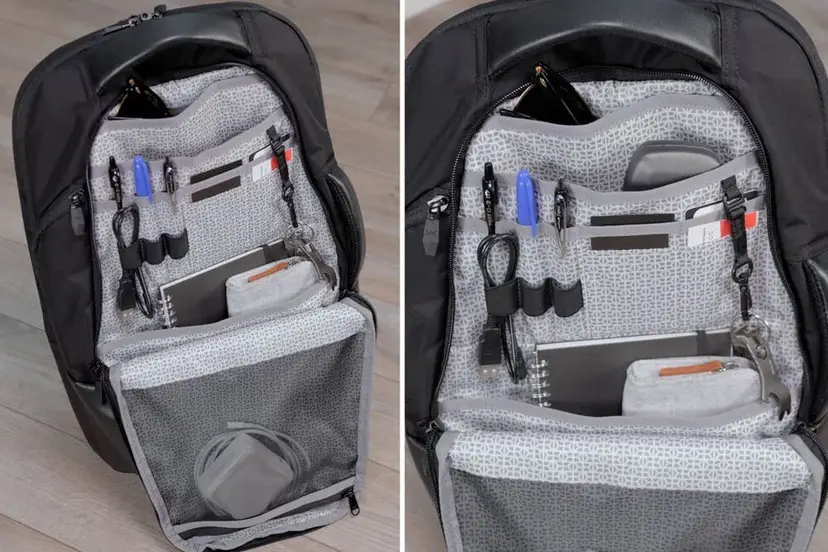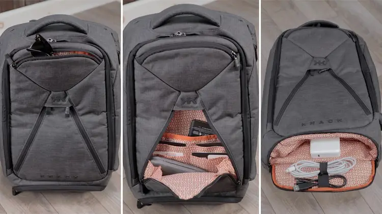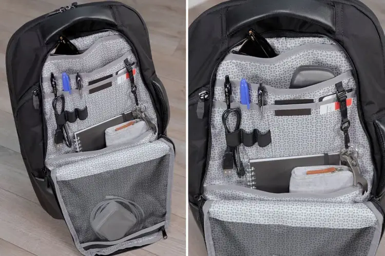 Key Everyday Features Easy-access, padded side-zip computer pocket. Main compartment with organization pockets, fleece-lined tablet pocket and removable key leash Hidden, zip-away side water bottle pocket Key Travel Features Separate, patent-pending, expandable packing compartment Meets most popular carry-on requirements as well as fits under most seats Hidden trolley sleeve slips over wheeled luggage handles Key Technical Features Custom-developed, durable, water-resistant body fabric Molded, comfort-cool foam back panel YKK™ water-resistant zipper with custom-designed pullers