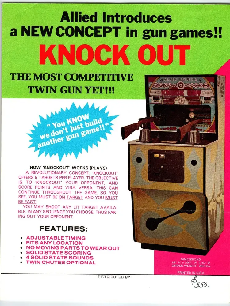 Brand: Allied Year: 1974 Game Title: Knockout Theme: Retro Original/Reproduction: Original Country/Region of Manufacture: United States Modified Item: No Arcade: Flyer