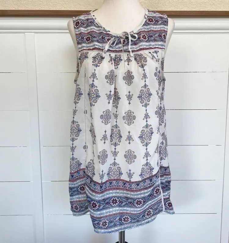 Knox Rose Sleeveless Cream Red and Blue Tie-Neck Floral Boho Top