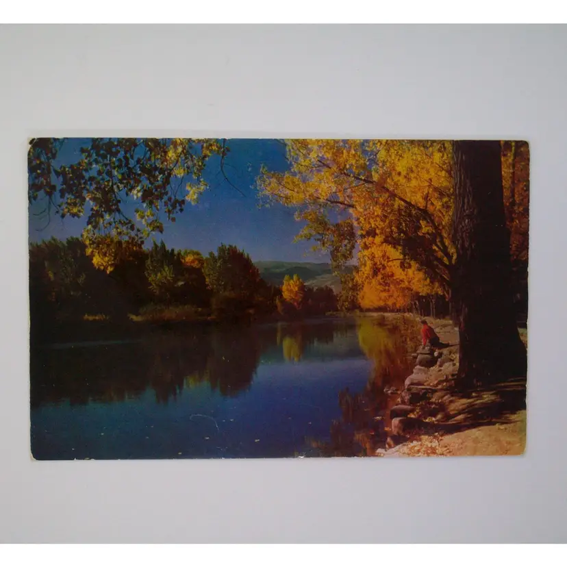 Beautiful vintage postcard featuring an autumn river scene. Perfect for collectors or as a nostalgic piece of decor. Measures approximately 5.5" x 3.5". Unposted and minimal wear
