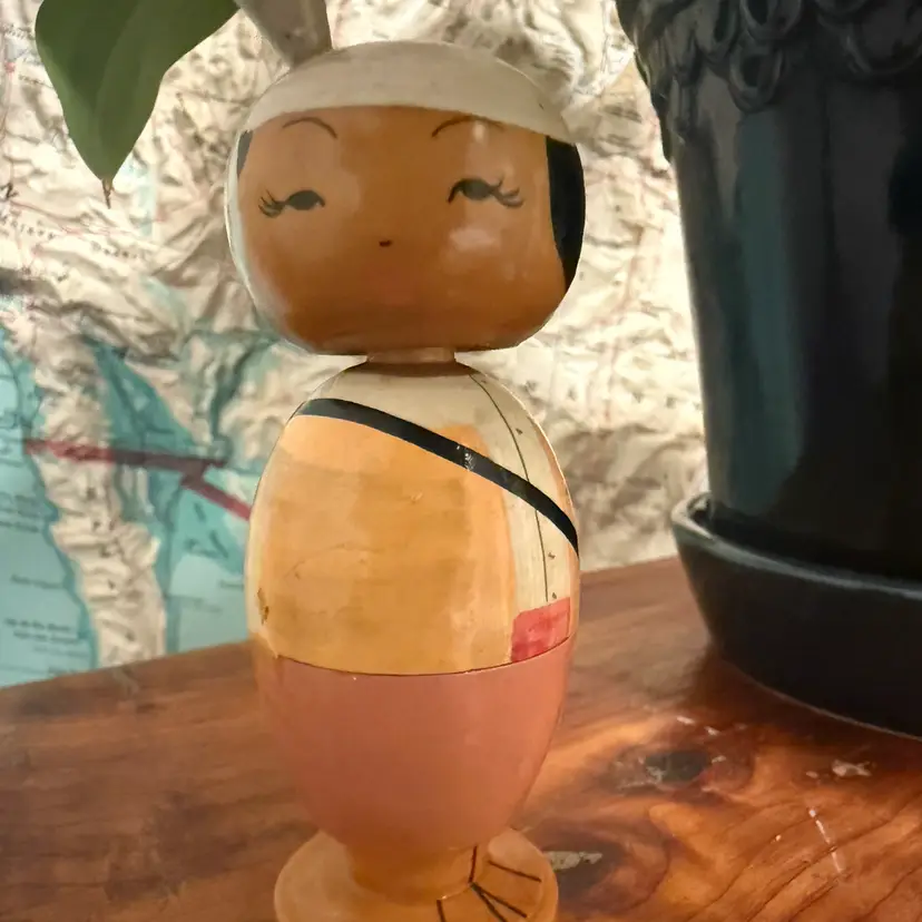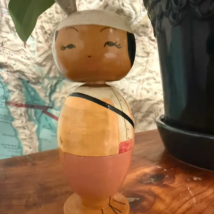Kokeshi Hand Crafter Signed Vintage Wooden Bobble Head Doll 5”