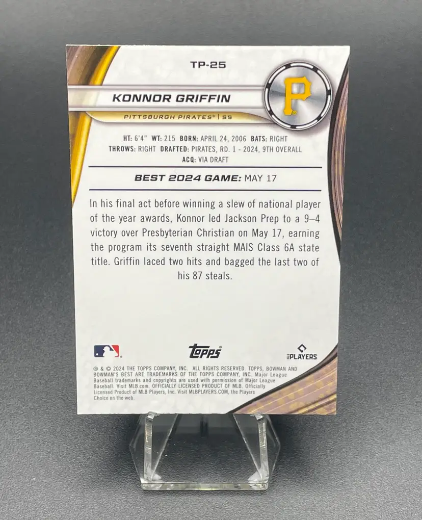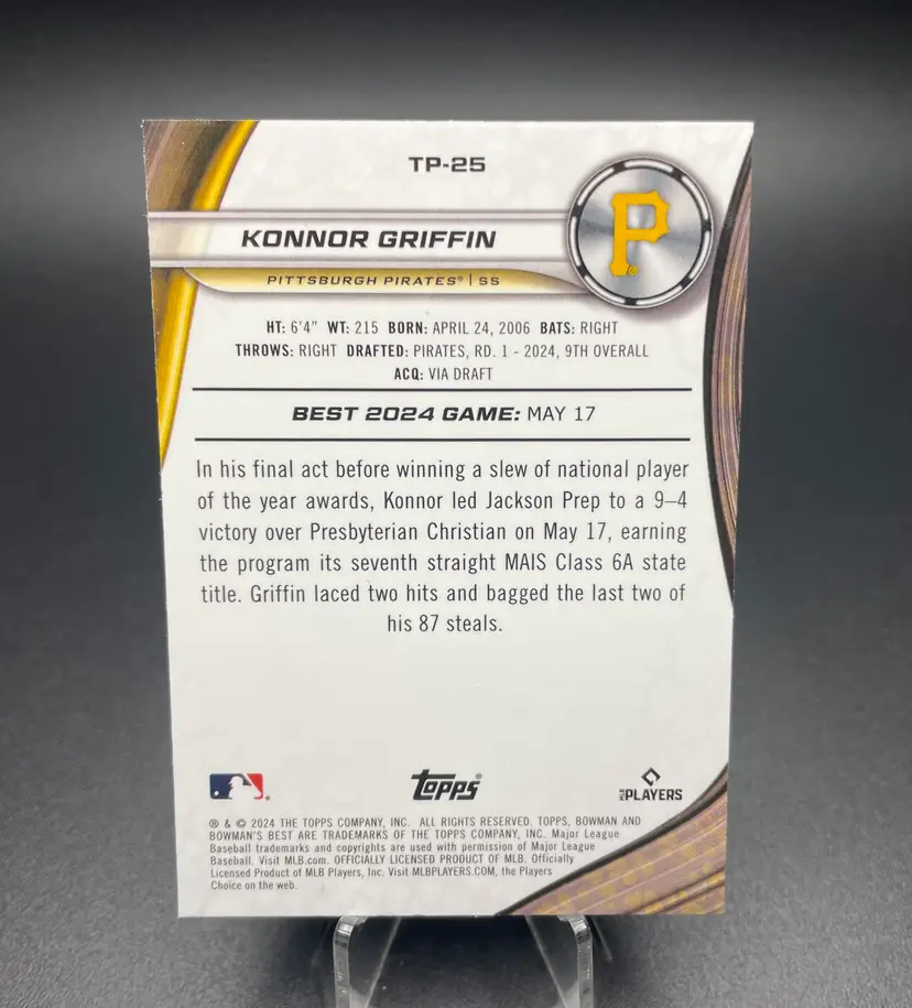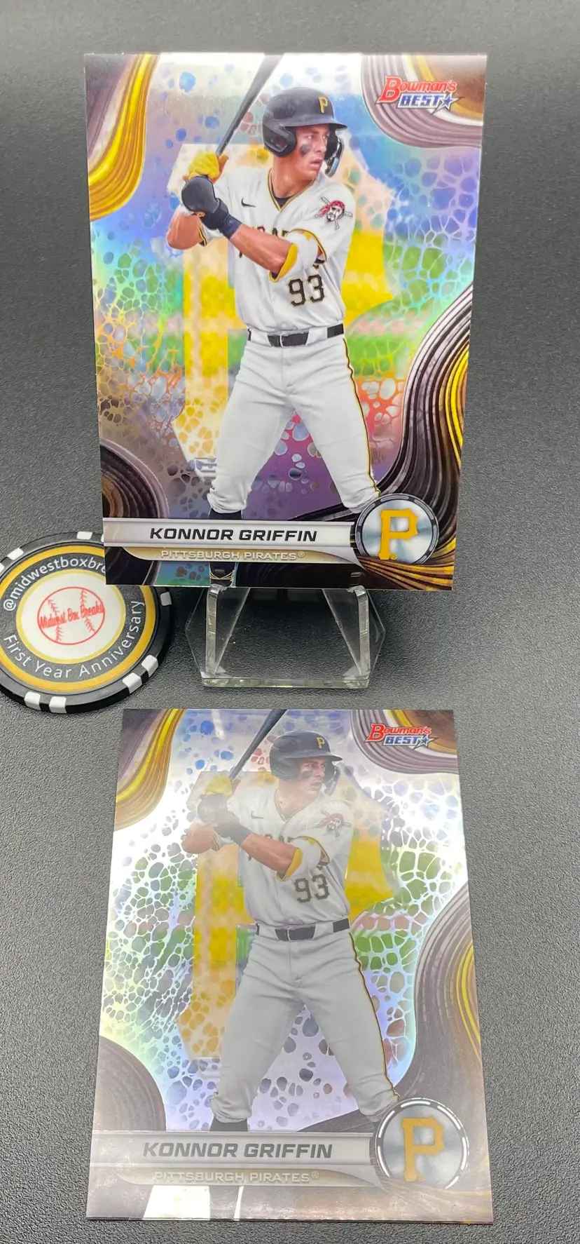 2024 Bowman's Best Konnor Griffin Lot includes: -Gold Lava Refractor 10/50 -Gold Refractor 22/50 -Refractor (x2)