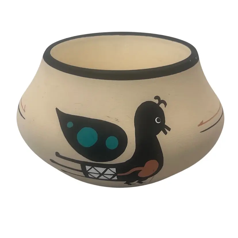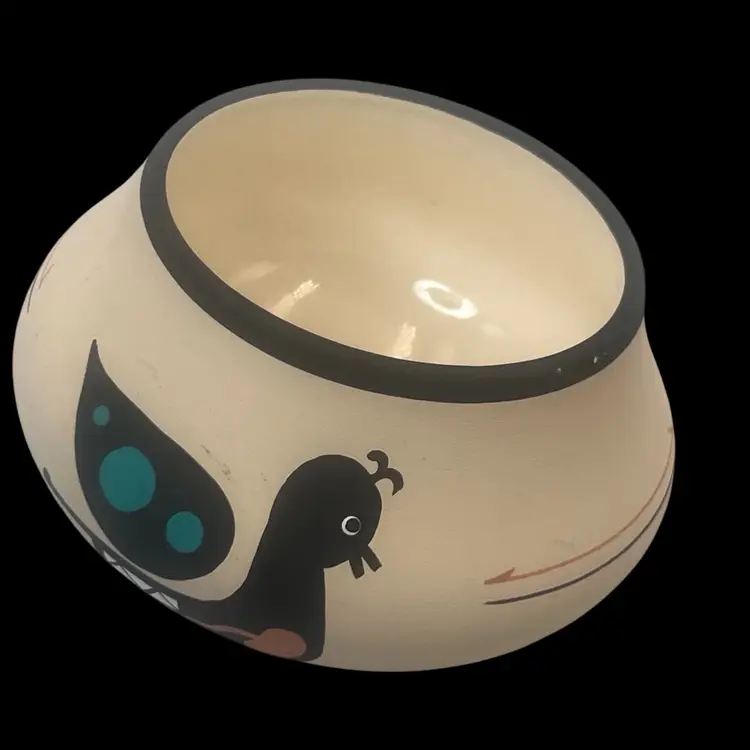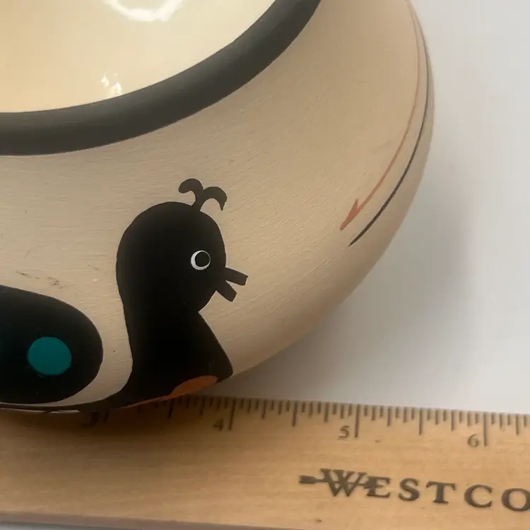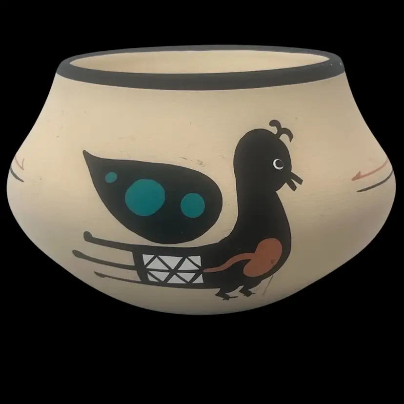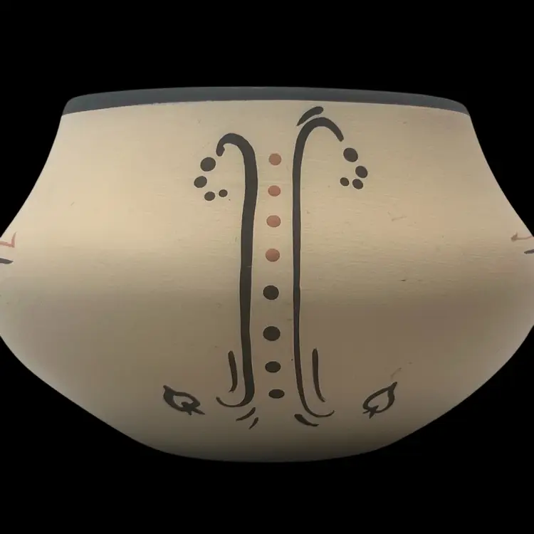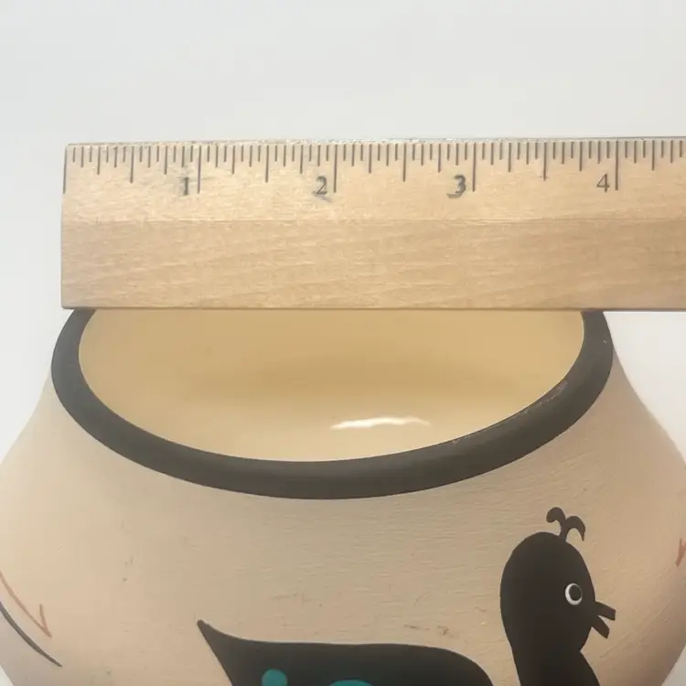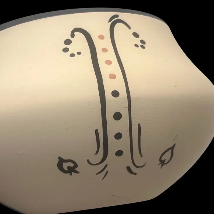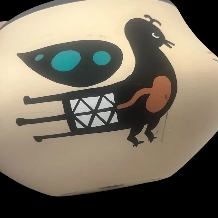Artisan made hand painted Mimbres bird pottery vase. Matte painted. No chips or cracks. See photos for details. Minor age marks.