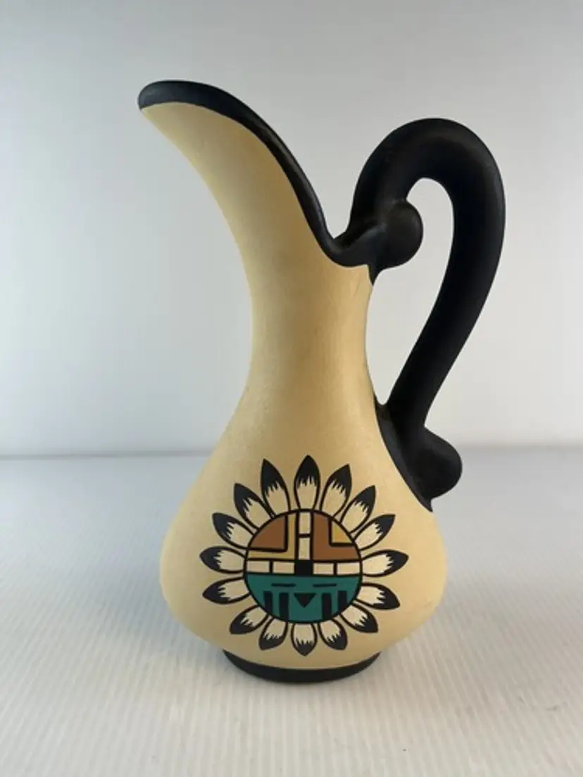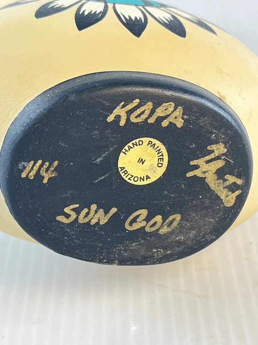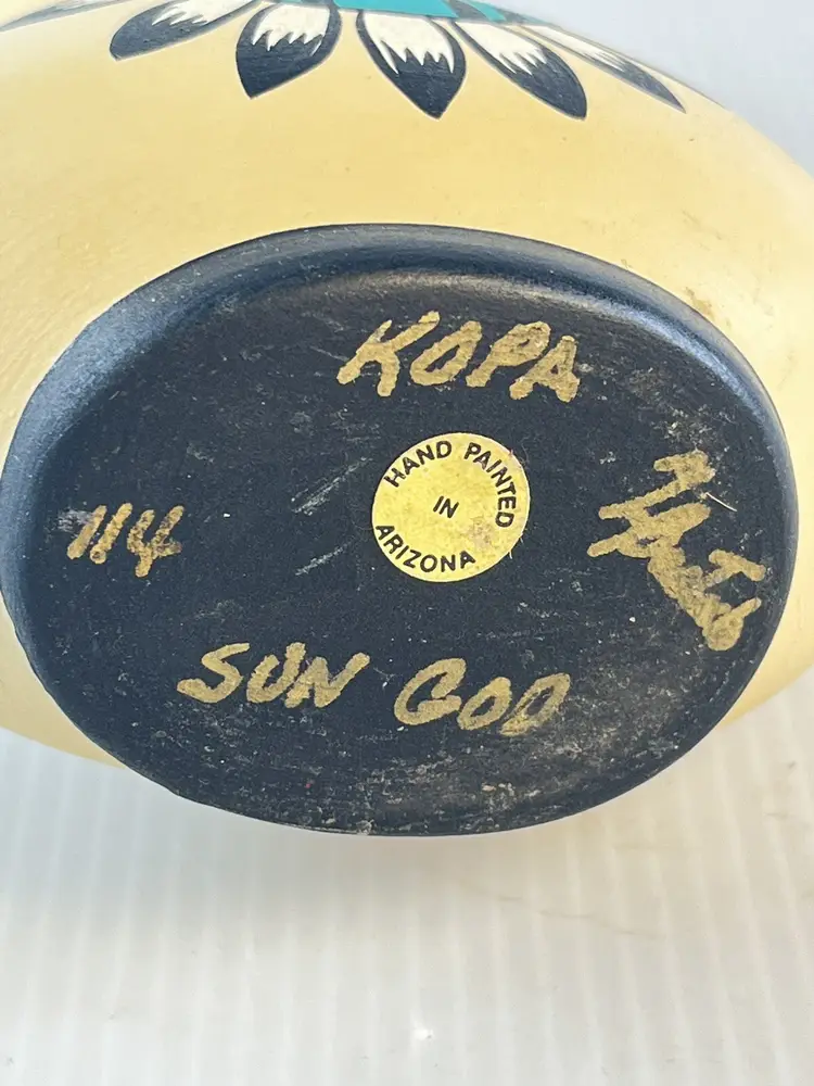 This listing is for a KOPA Pottery "Sun God" 2 sided pitcher vase. It is from Arizona and is signed and numbered. It is in great condition with no chips or breakages. Please review all pics.