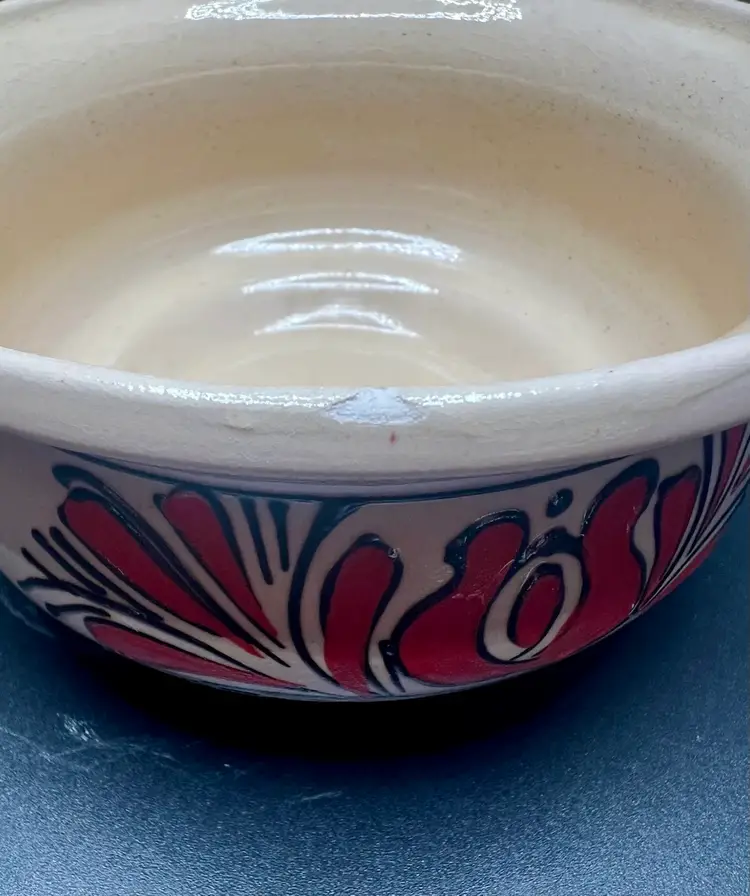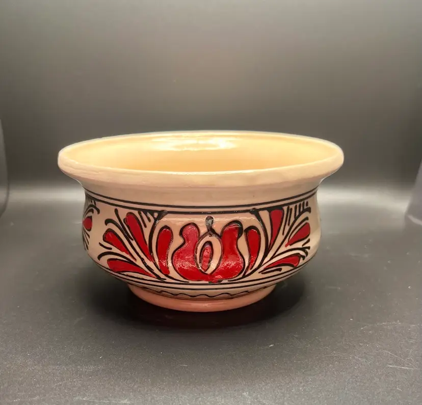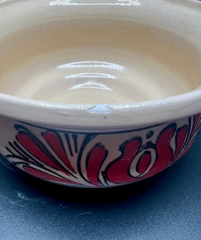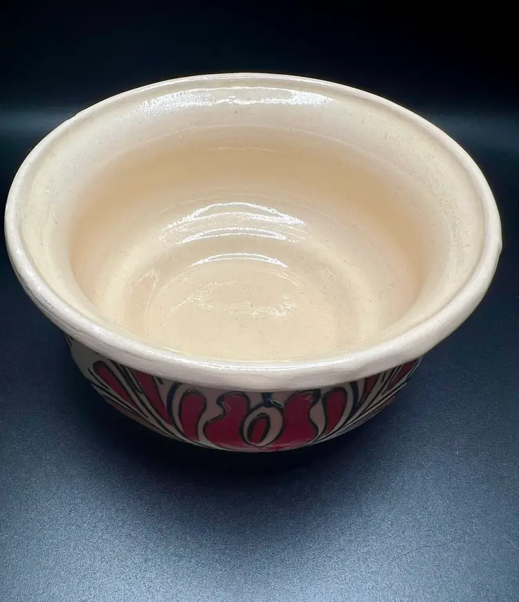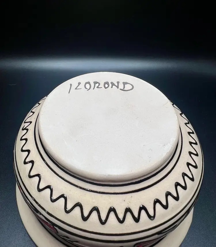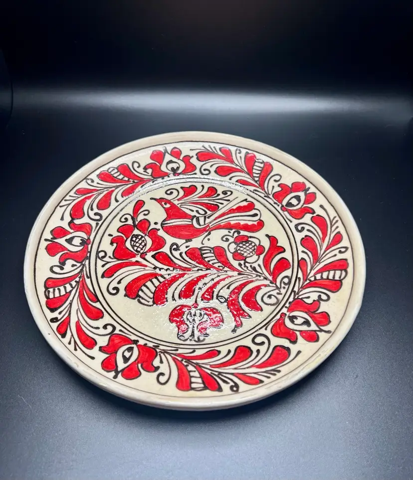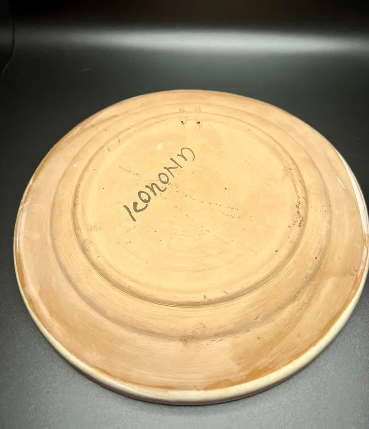 Beautiful bird pattern on hand painted plate with hanging option in back. Excellent condition; no chips, cracks, or repairs. Bowl is in great condition but does have small chip on rim as shown in photo. Both pieces are signed.