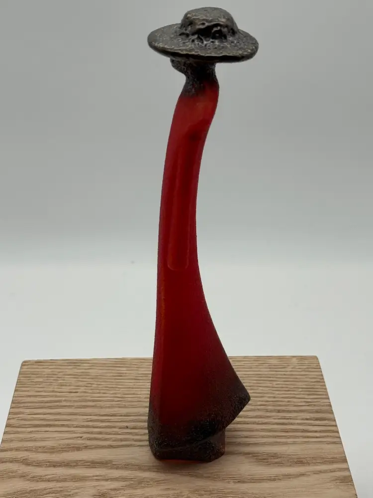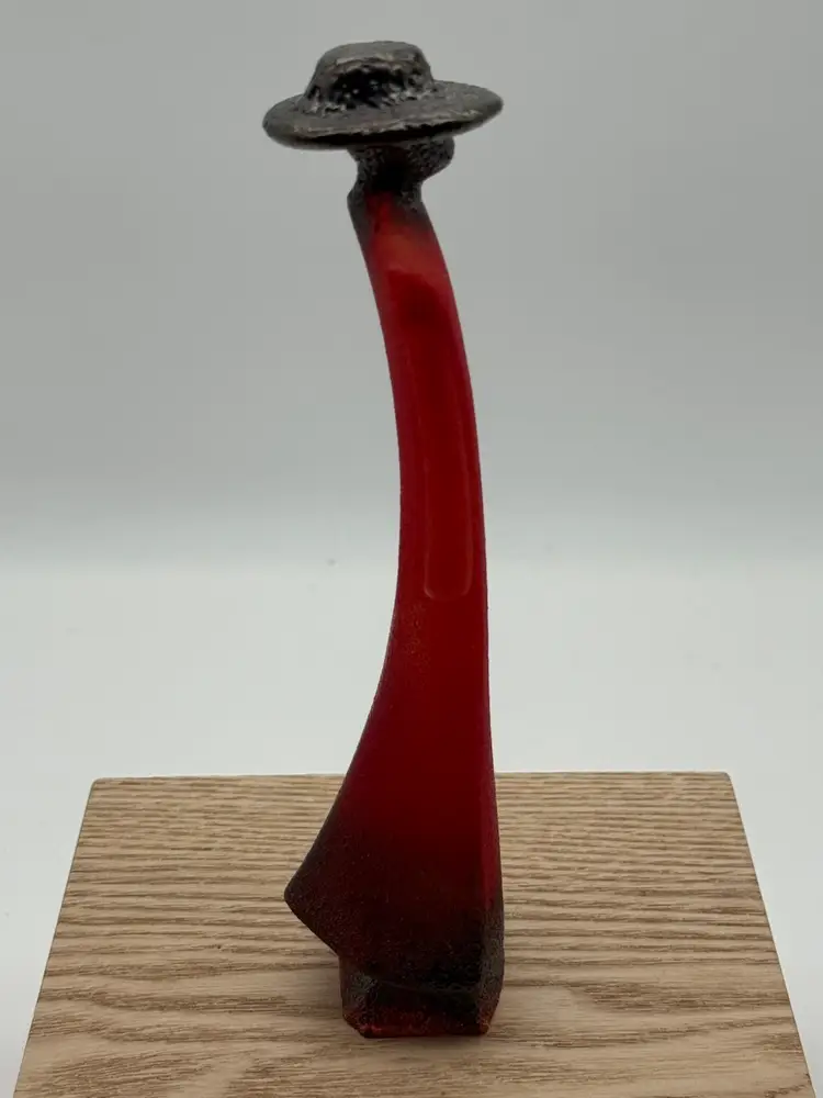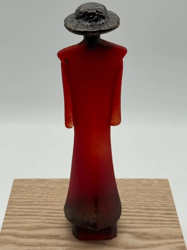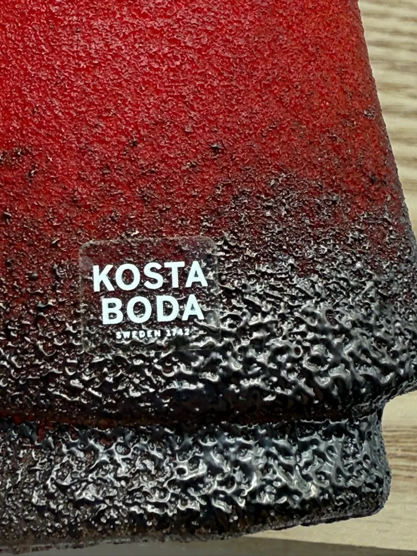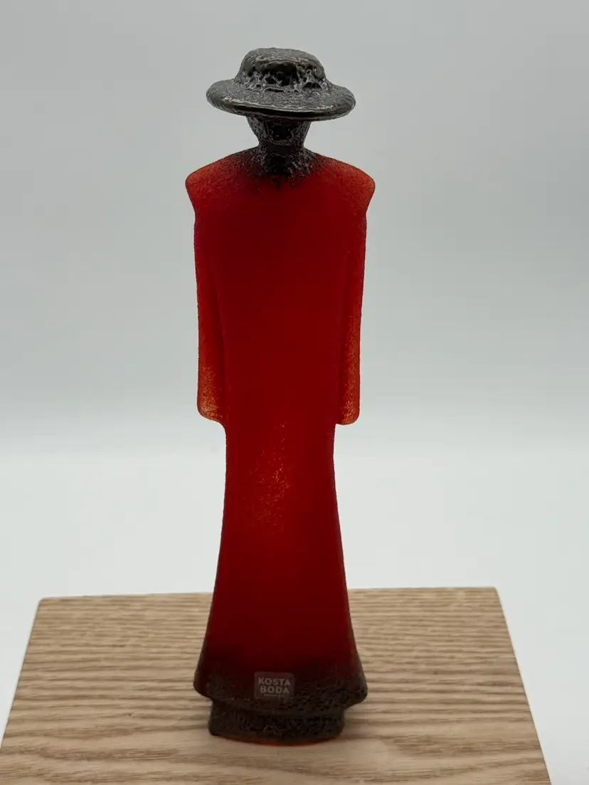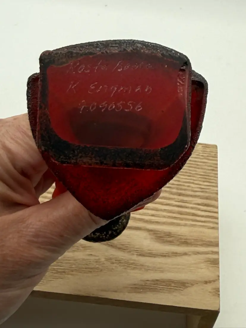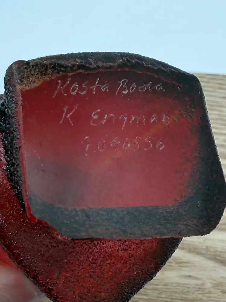 Measures 7.75” tall, 2” wide No chips or cracks Signed Kosta Boda K Engman 7090556 Kosta Boda Sweden 1742 sticker on front Wood riser not included