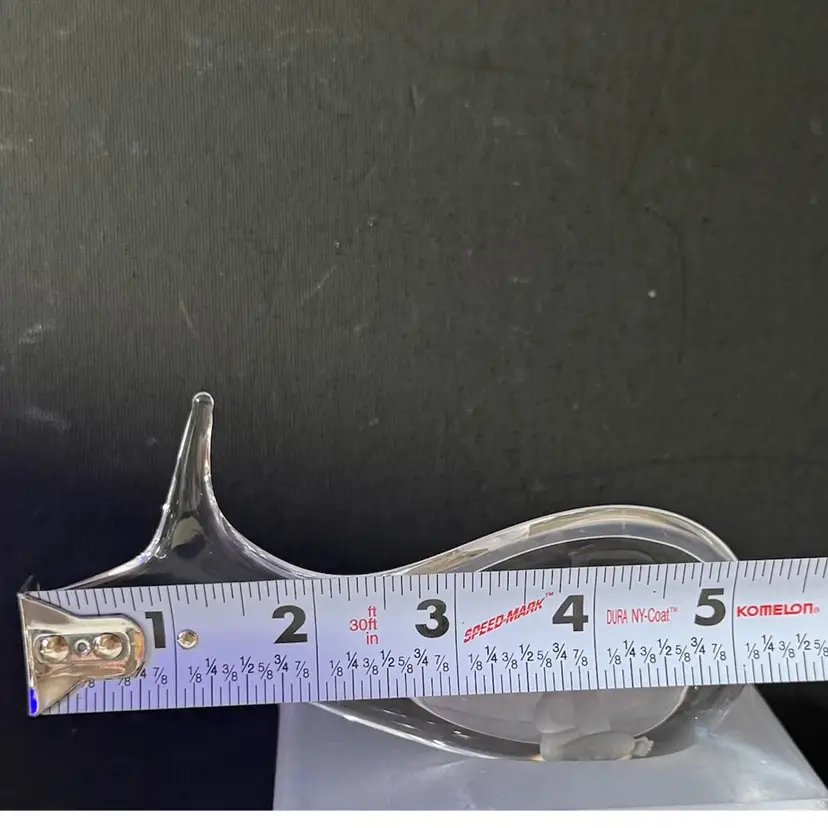 Beautifully crafted Swedish paperweight. Condition: Small spot of scratches near the tail fin on one side, some tiny air bubbles. No others issues noted. Measurements are approximate. Please see pictures for condition and measurements as they are a part of the description. S1-5 Thank you for looking!