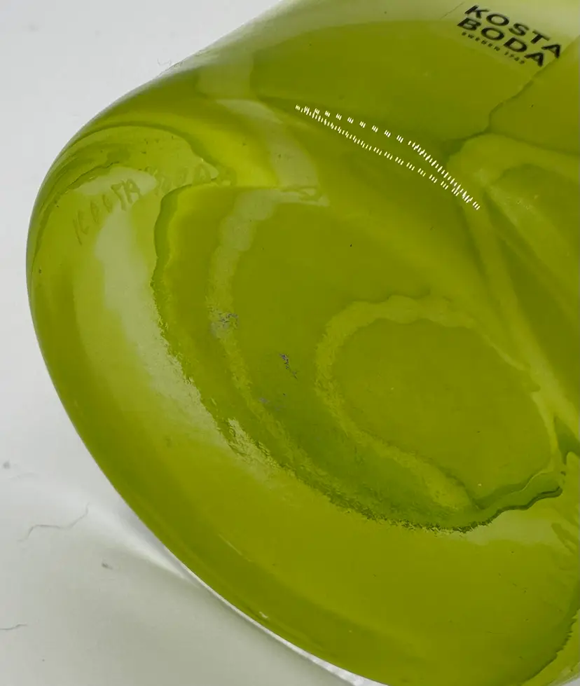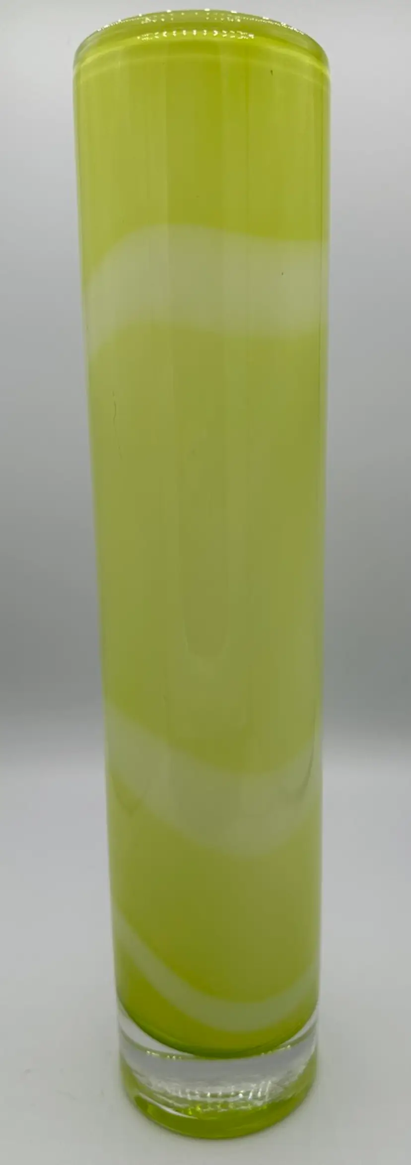 KOSTA BODA Samoa Cased Glass Vase Yellow Lime Signed Anna Ehrner Sweden 13 1/4"