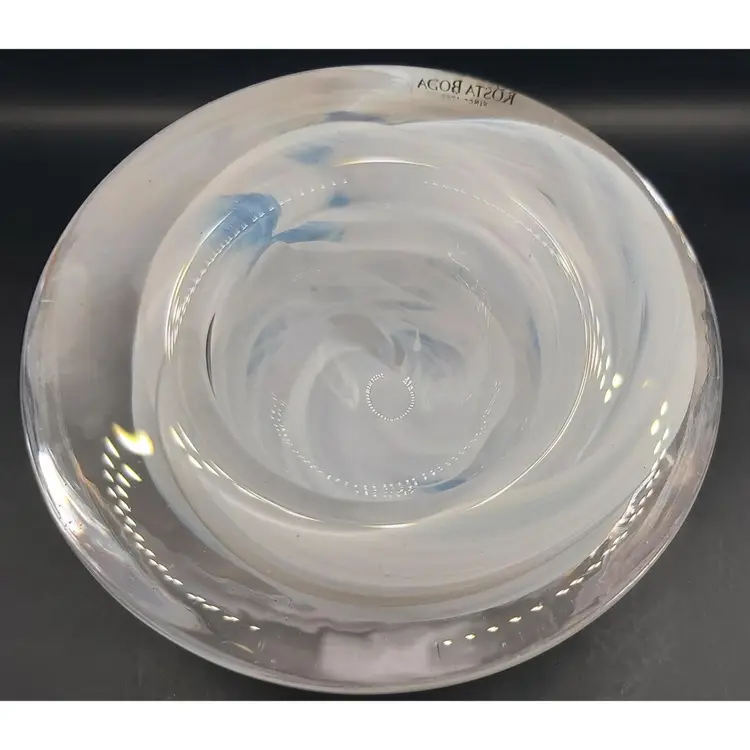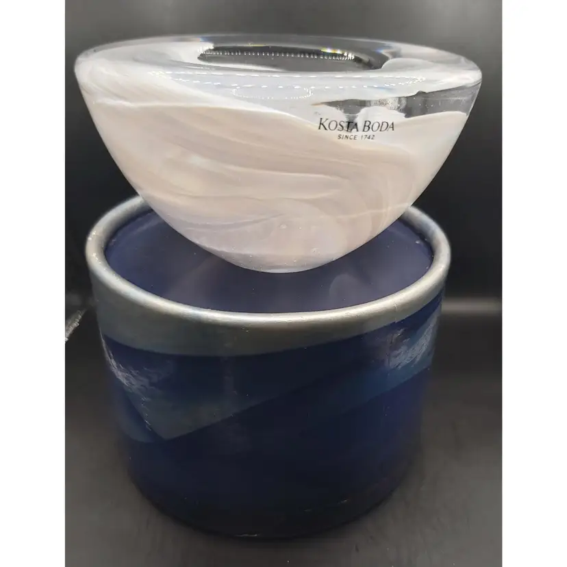 Beautiful white swirl Kosta Boda candle holder. Handcrafted in Sweden. Comes with its original box. Excellent condition with no chips or cracks.