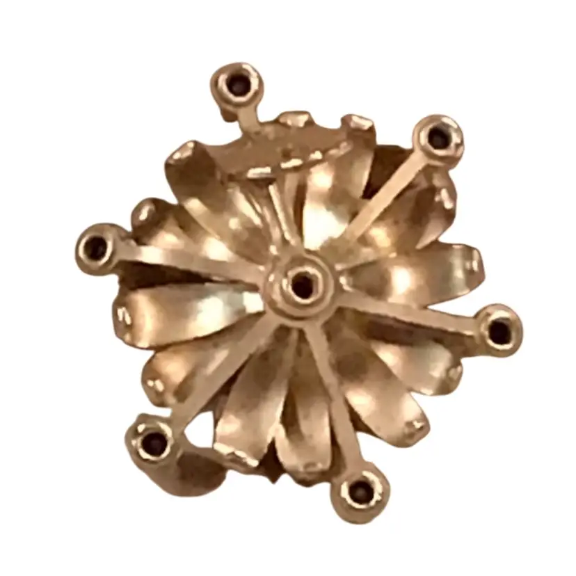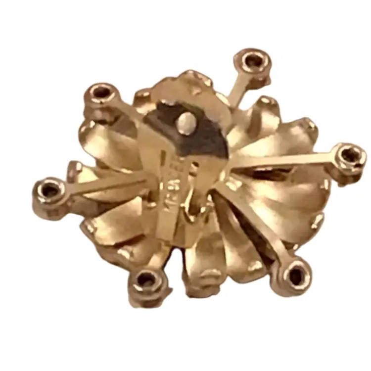 Kramer clip on earrings, featuring aurora, borealis rhinestone clusters, suede type in starburst gold tone setting, signed Kramer. 1.5” dia. excellent condition