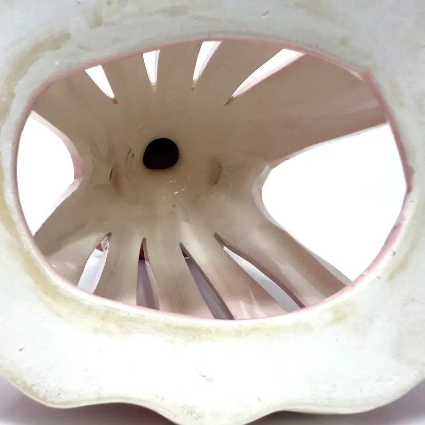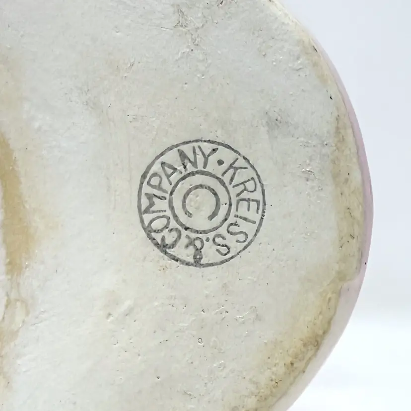 Made in Japan during the post‑war era of collectible ceramics, this Kreiss figure showcases soft pink and white glazes with hand‑painted detail. Kreiss novelties were popular in mid‑century kitchens and dining rooms for bringing everyday function and whimsical artistry together. While the original miniature salt and pepper shakers are no longer included, the figure remains display‑ready with distinctive mid‑century character.