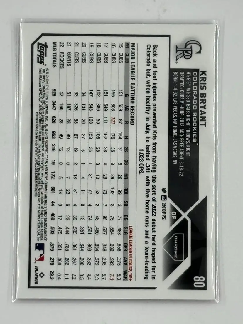 Kris Bryant 2023 Topps Chrome Logofractor Pink Refractor /199 Colorado Rockies